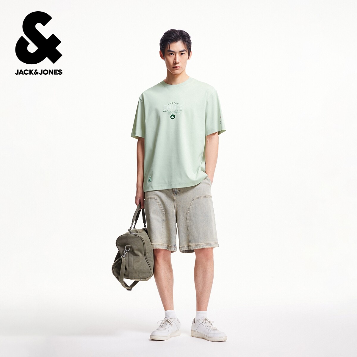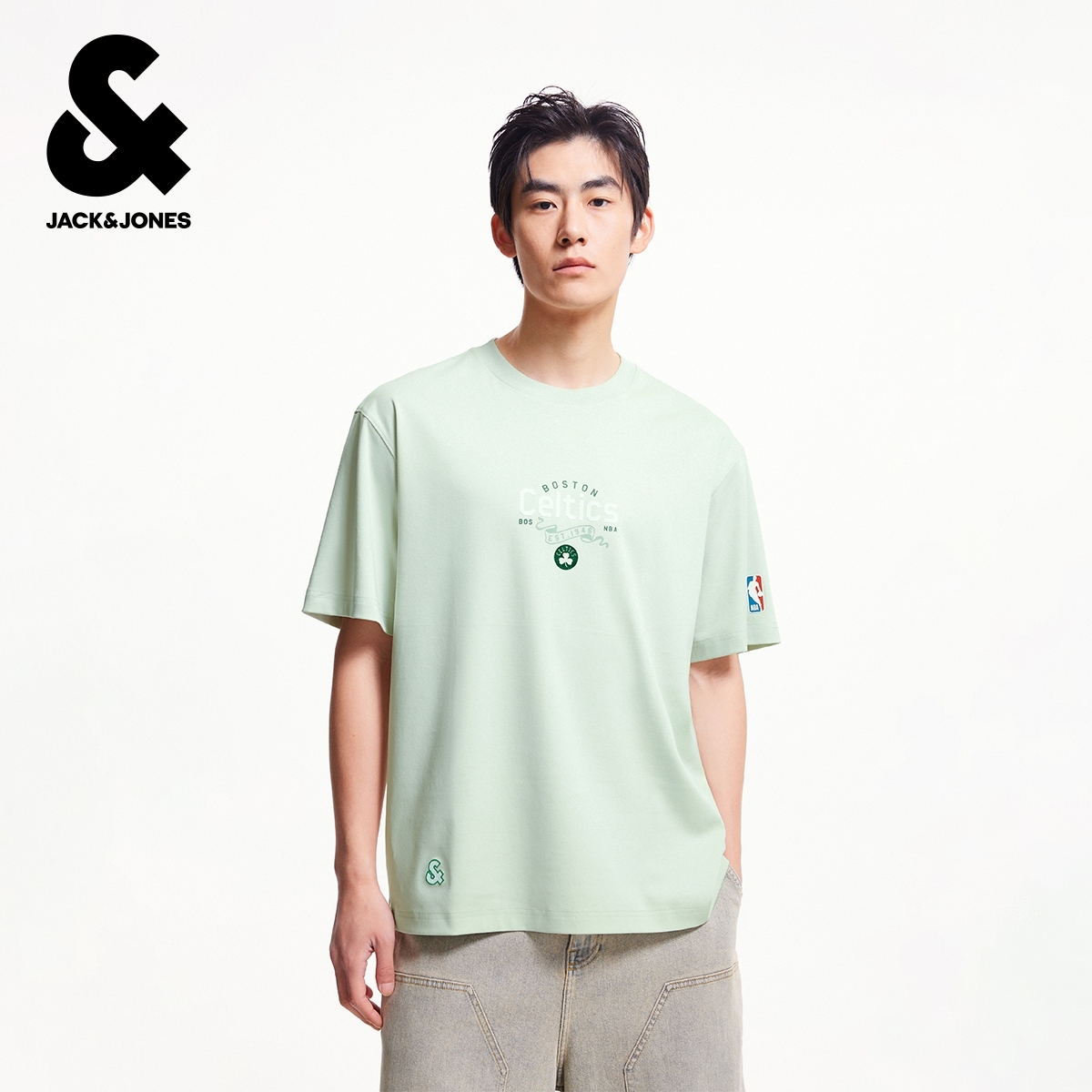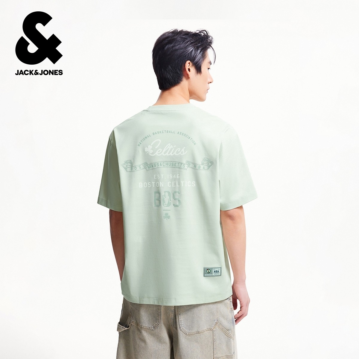 杰克琼斯秋季NBA联名男装运动简约纯棉舒适宽松圆领短袖T恤上衣