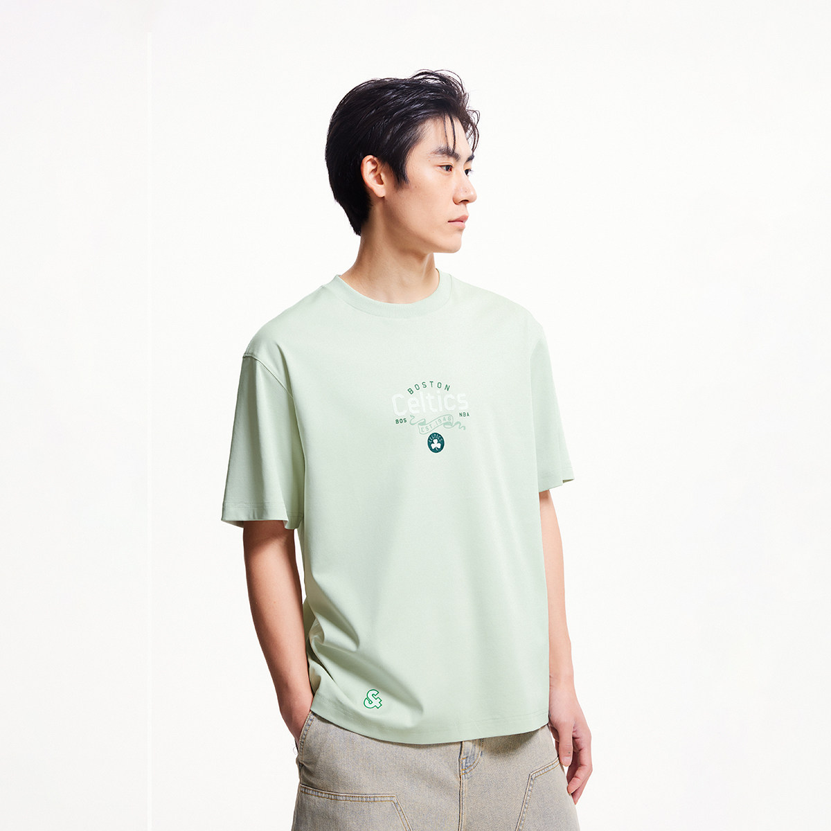 波士顿凯尔特人球队植绒图案;左袖胶印贴布