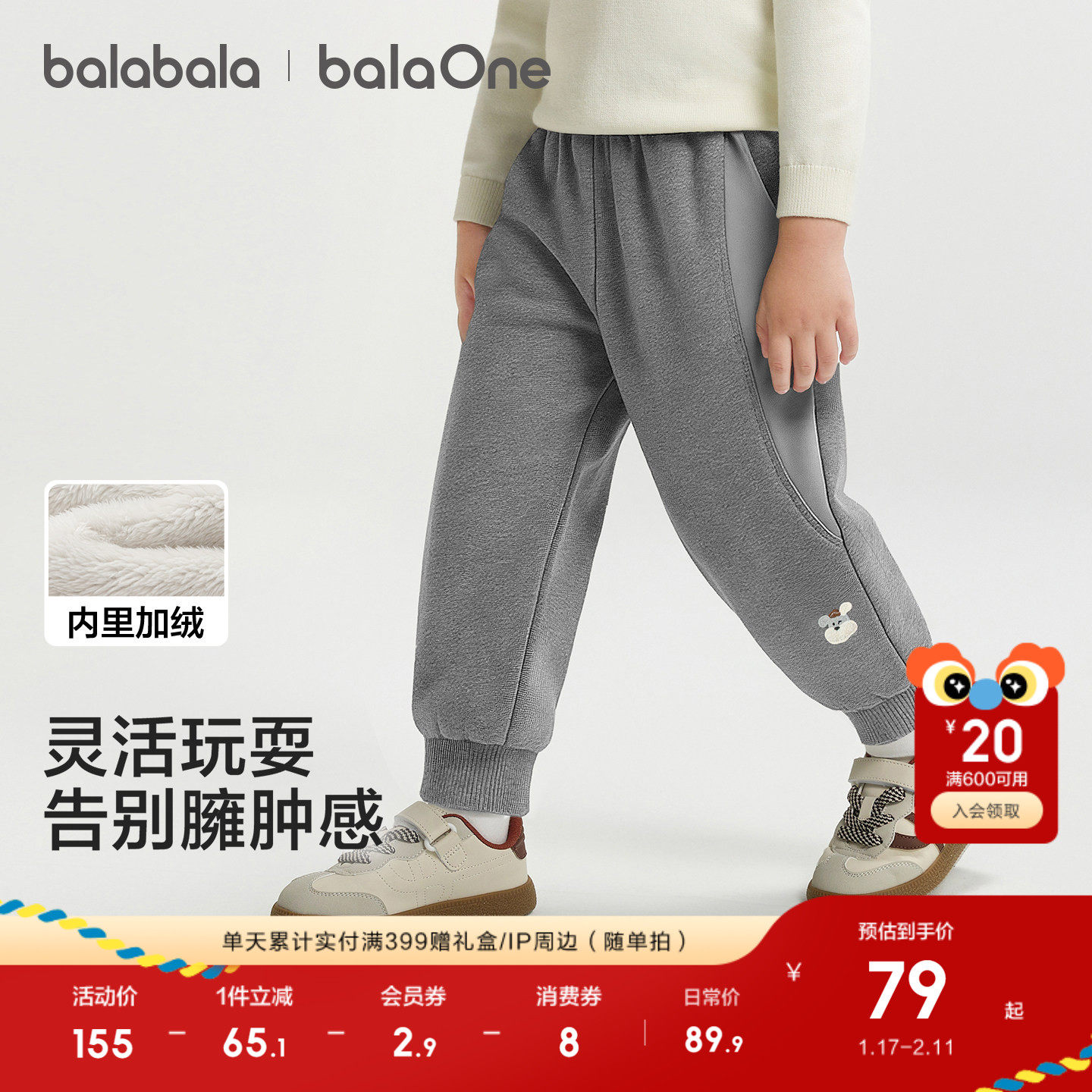 巴拉巴拉童装宝宝加绒长裤男女童2025冬装新款儿童厚束脚运动裤子