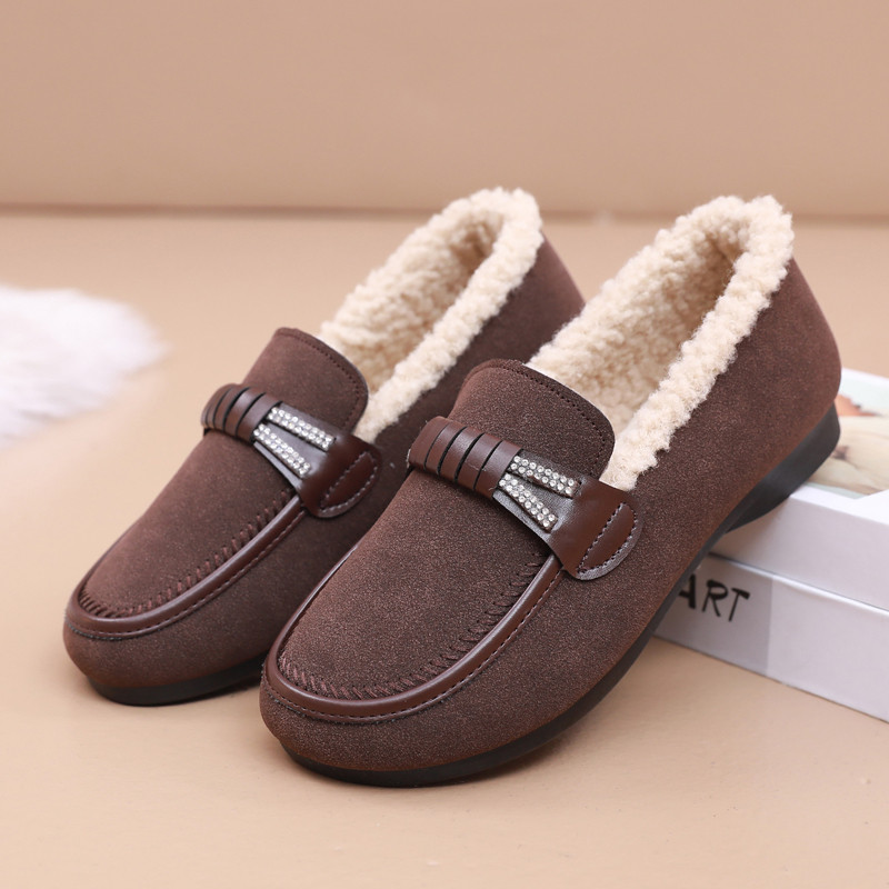 老北京布鞋女加绒妈妈棉鞋冬季防滑软底保暖奶奶鞋平底休闲豆豆鞋