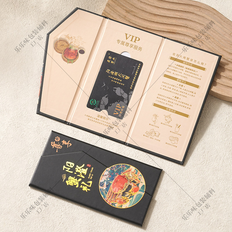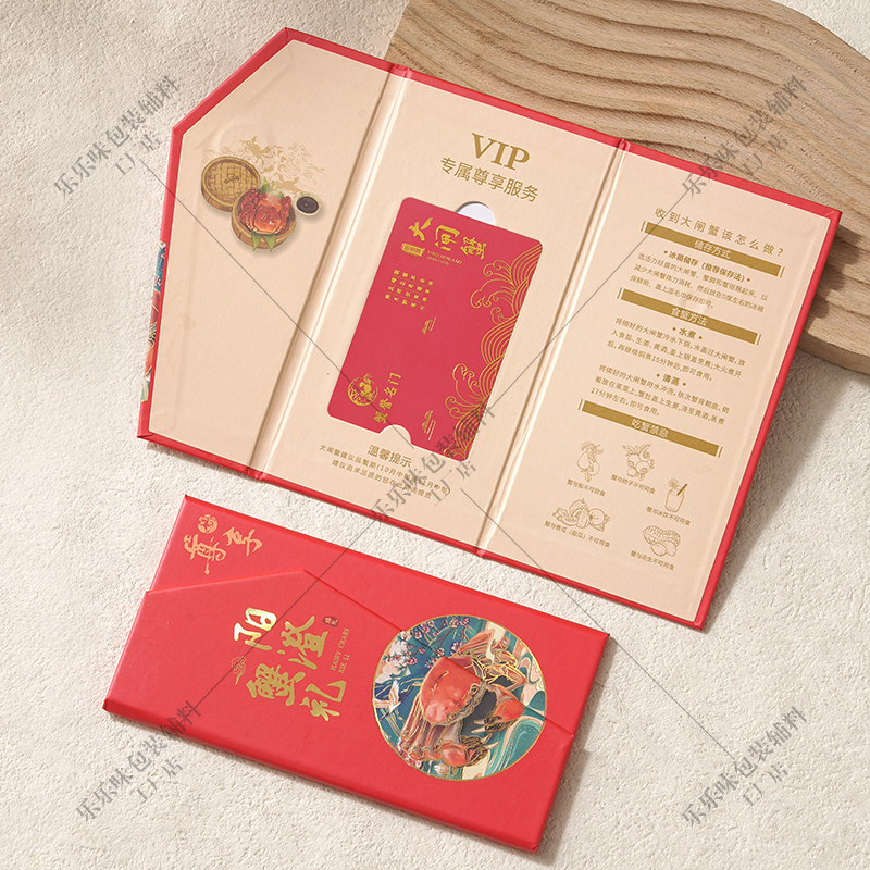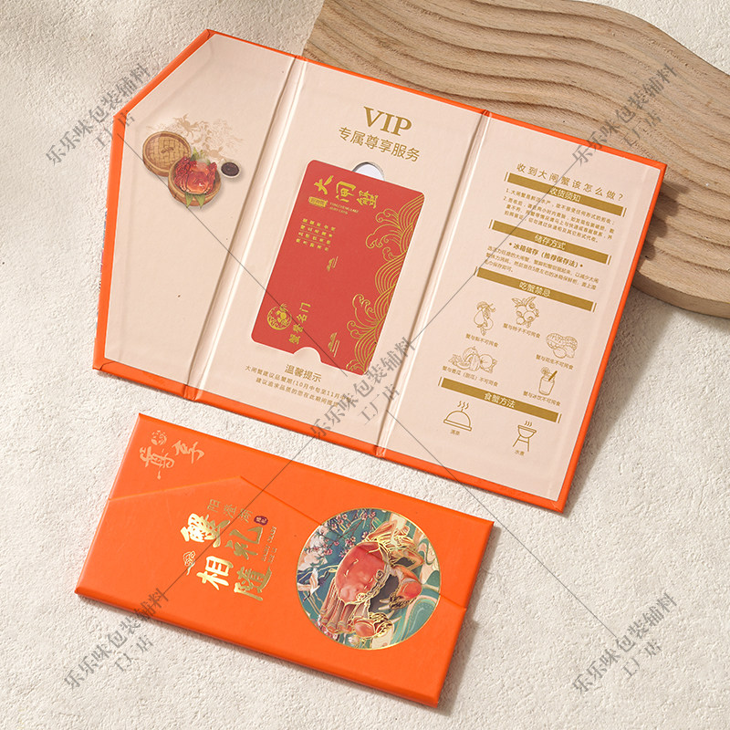 大闸蟹现货卡套会员提蟹卡封套三折页海鲜提货卡包装盒阳澄湖通用