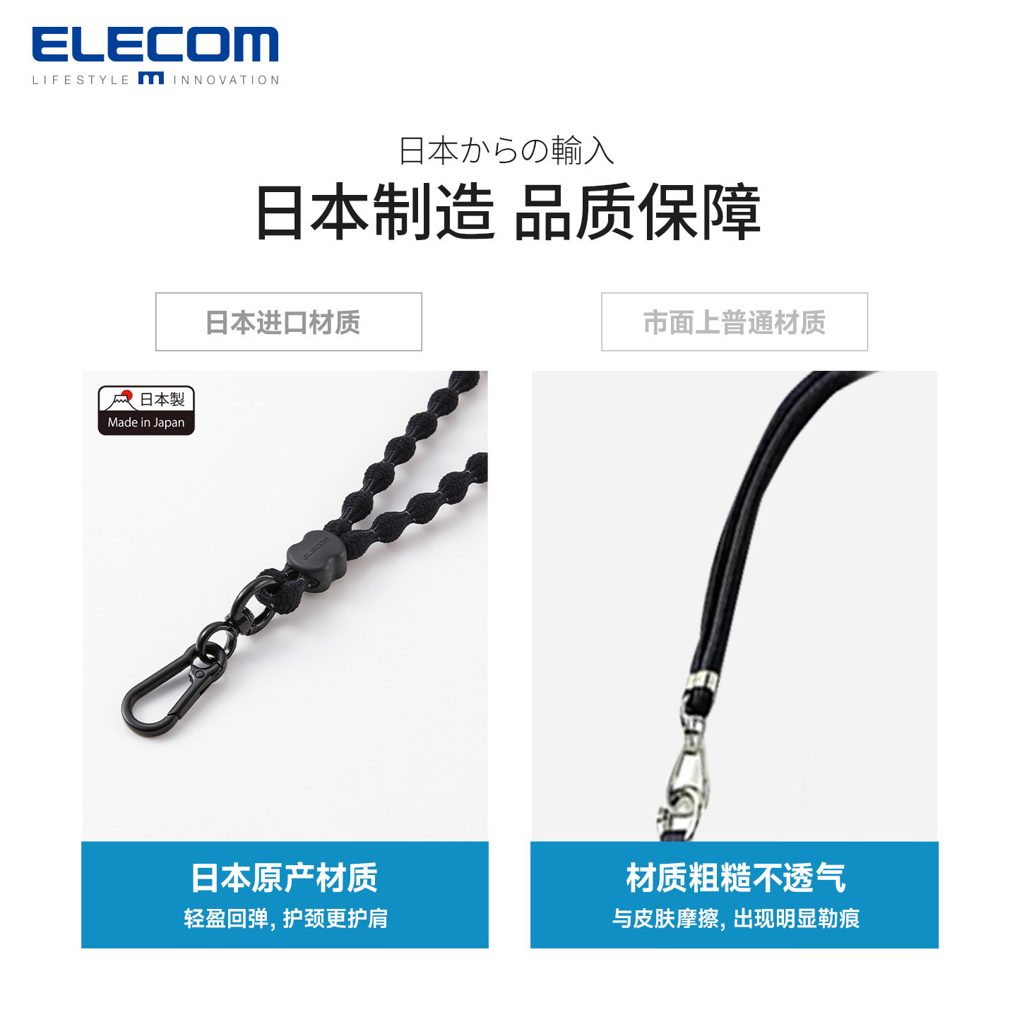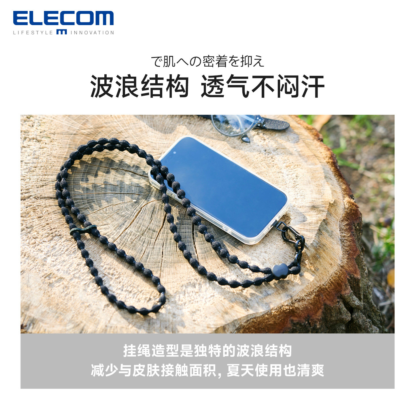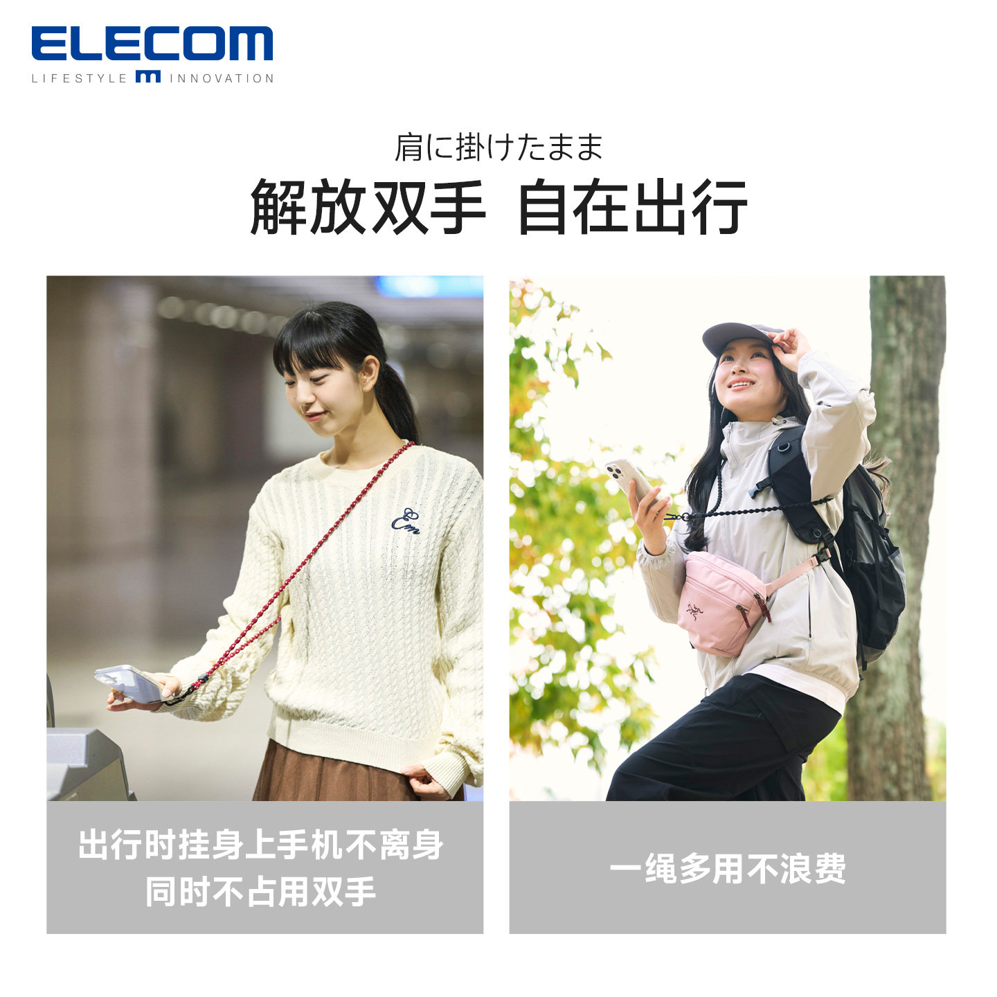 elecom轻弹空气手机挂绳斜挎可背户外山系挂脖手机链日本进口防丢绳手机壳垫片挂饰可调节多功能手机绳结实
