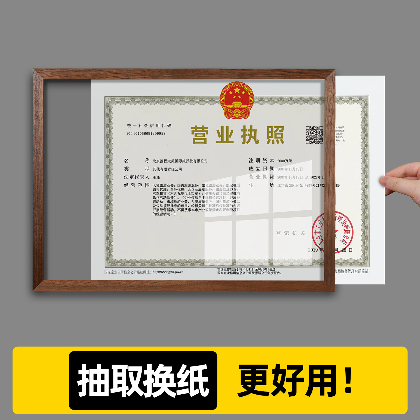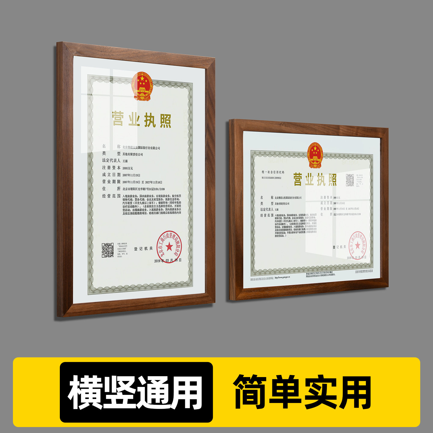 营业执照框架挂墙免打孔证件保护套展示相框食品经营卫生许可证框