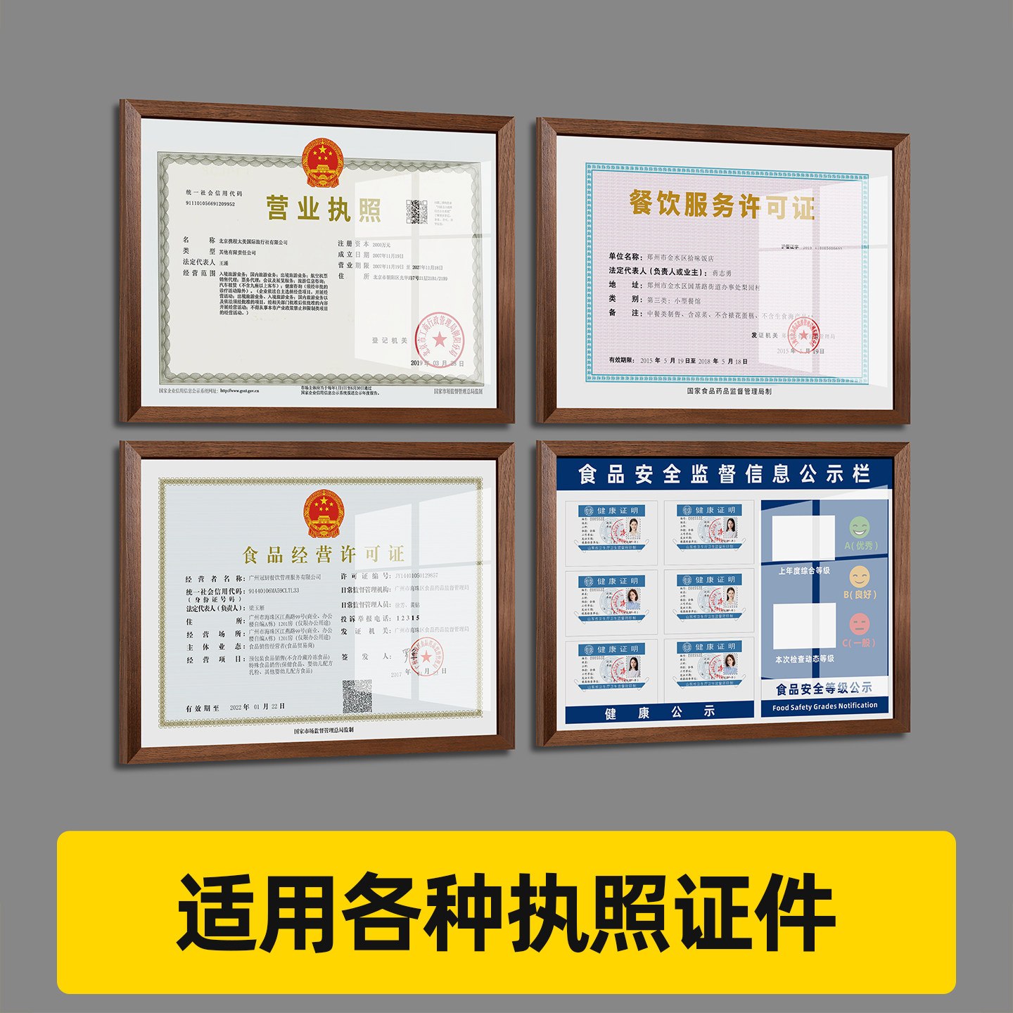 营业执照框架挂墙食品安全信息公示栏健康许可证卫生放餐饮展示板