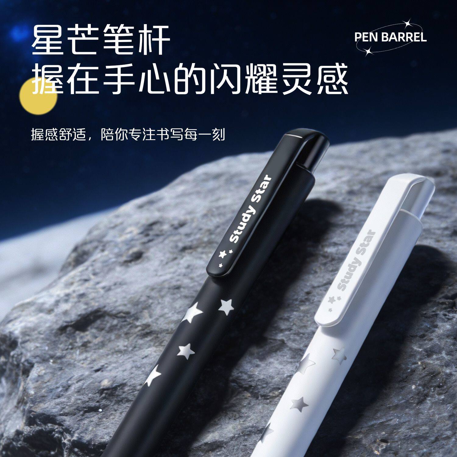 爱好学习之星刷题笔速干顺滑ST尖按动中性笔简约高颜值学生用0.5黑色中性笔签字水笔按动笔考试黑笔