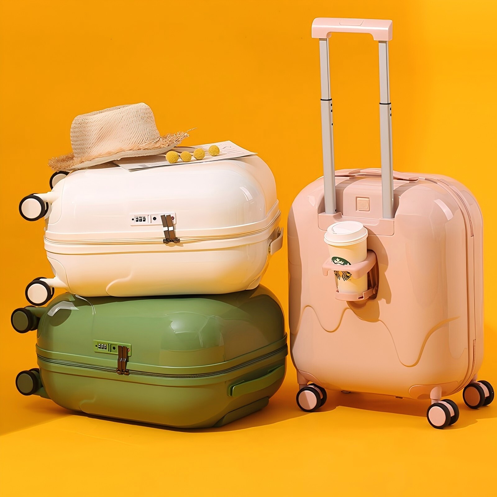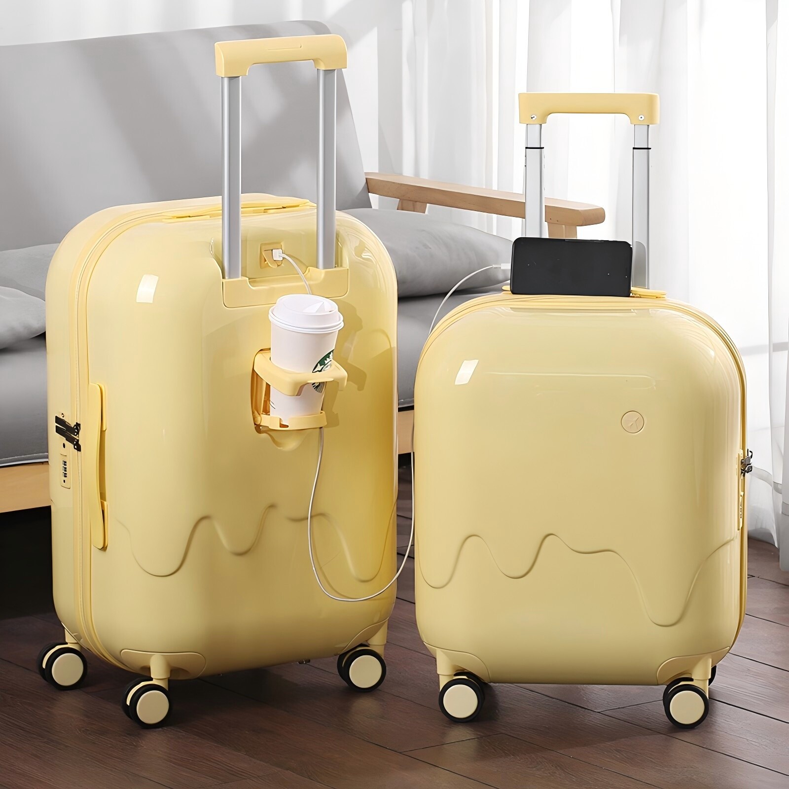 可爱泡泡箱 海关锁 静音轮 带杯架 可充电