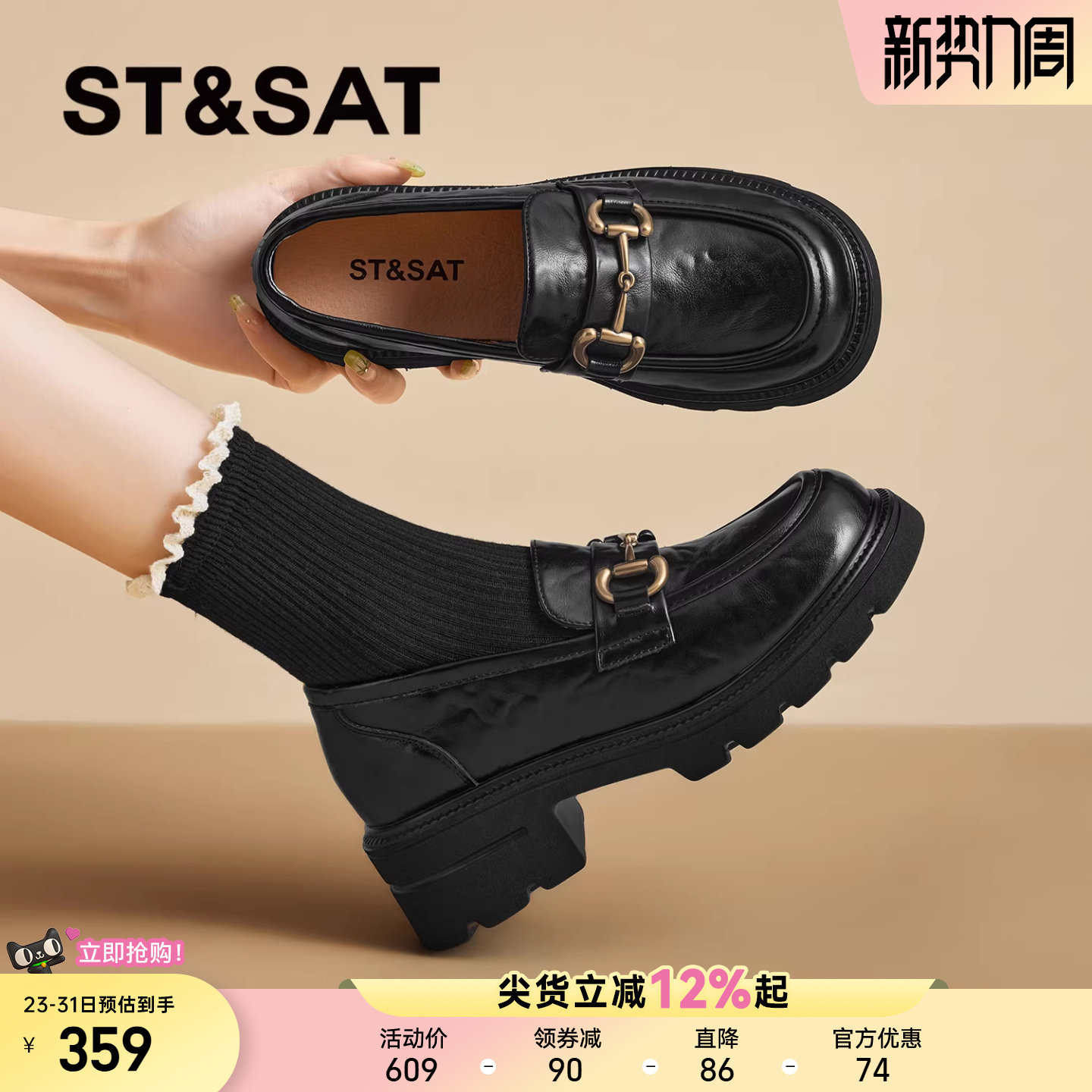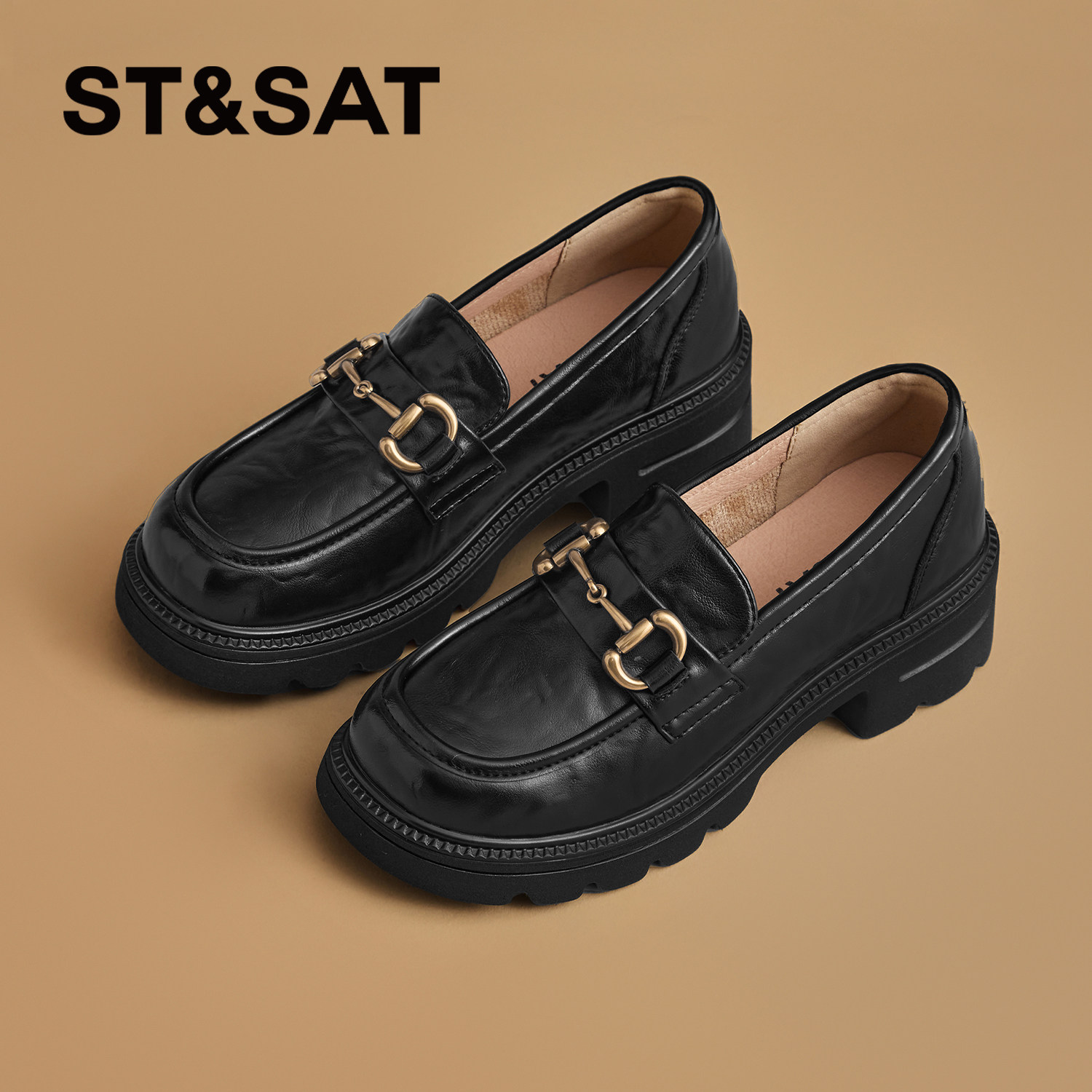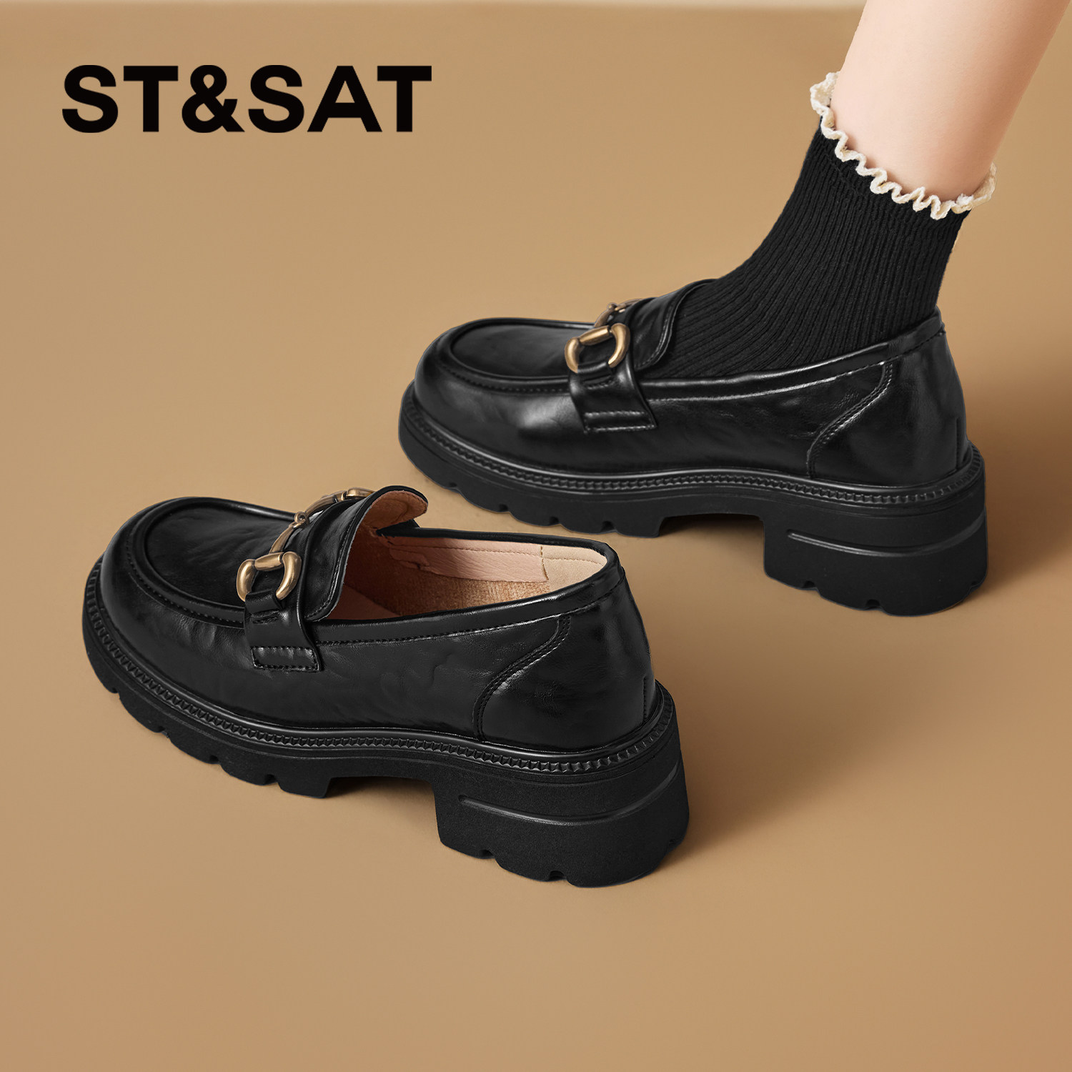 星期六英伦乐福鞋女2025新款秋季通勤一脚蹬单鞋厚底jk黑色小皮鞋