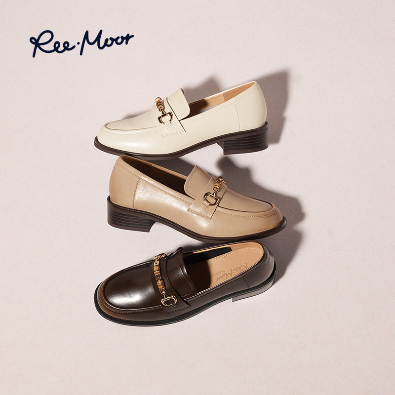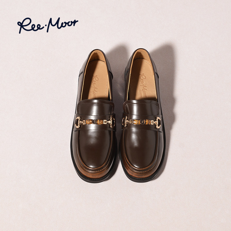 REEMOOR睿慕2026春季新款英伦乐福鞋复古厚底增高一脚蹬小皮鞋女