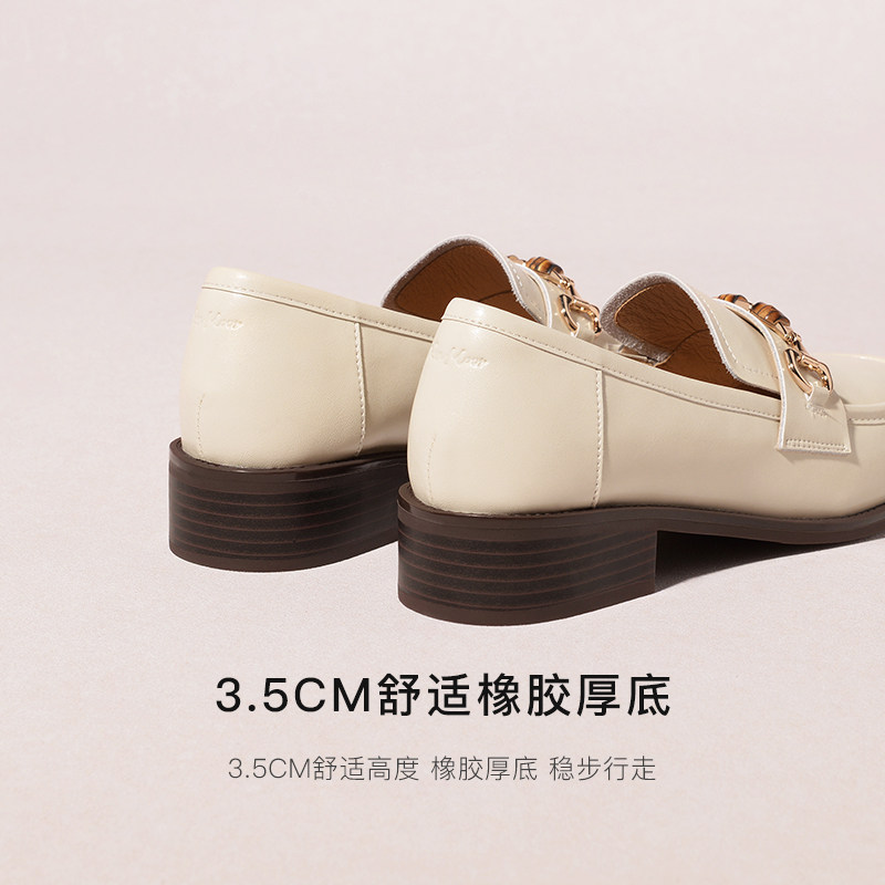 真皮~骄屿复古一脚蹬乐福鞋女厚底粗跟圆头单鞋百搭英伦风小皮鞋