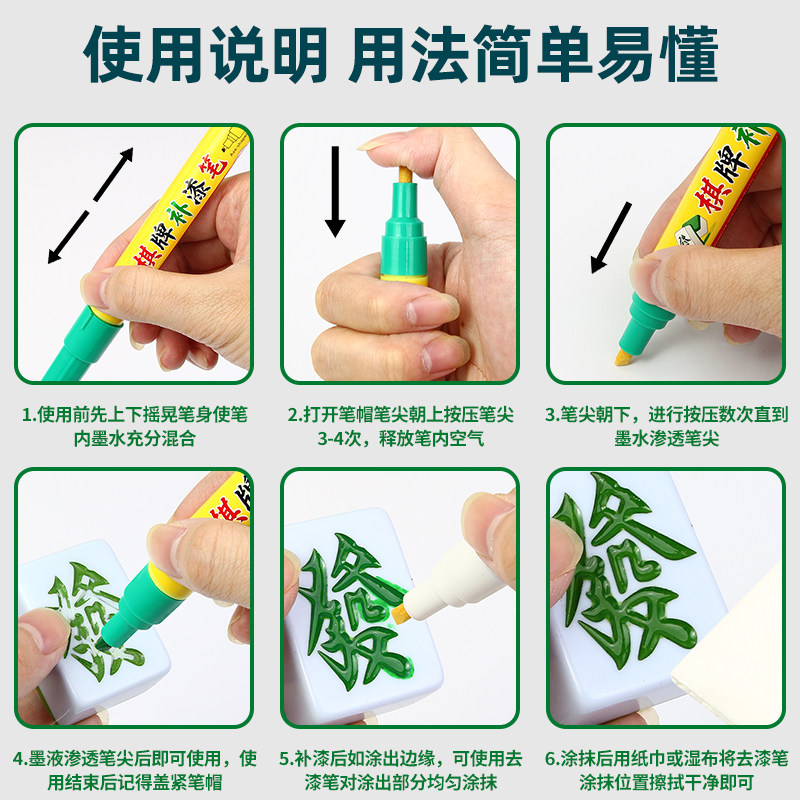 麻将牌补色笔自动牌象棋牌九上色翻新专用红色油漆笔马克笔防水速干不掉色黑色绿色划痕补漆笔描红涂色修复笔