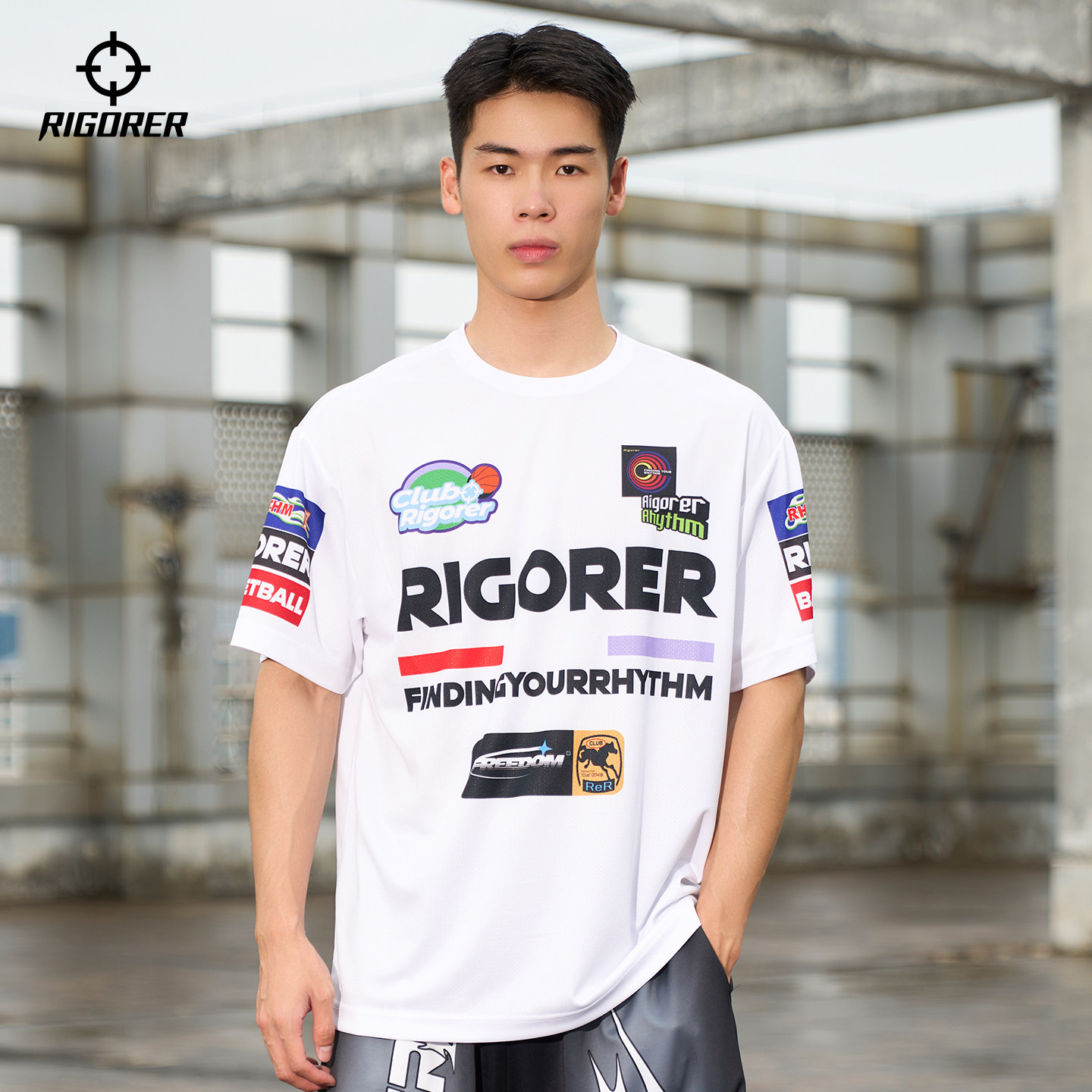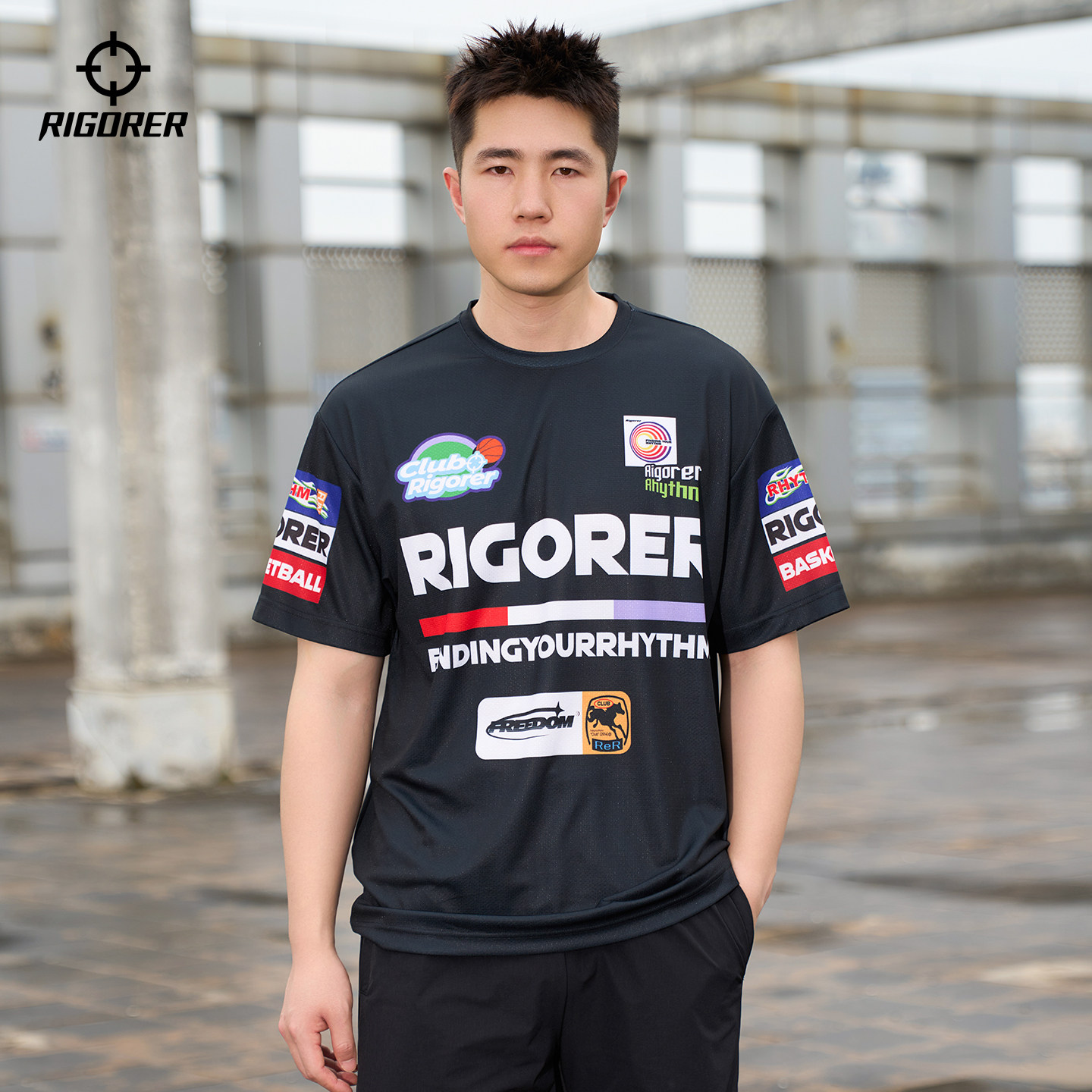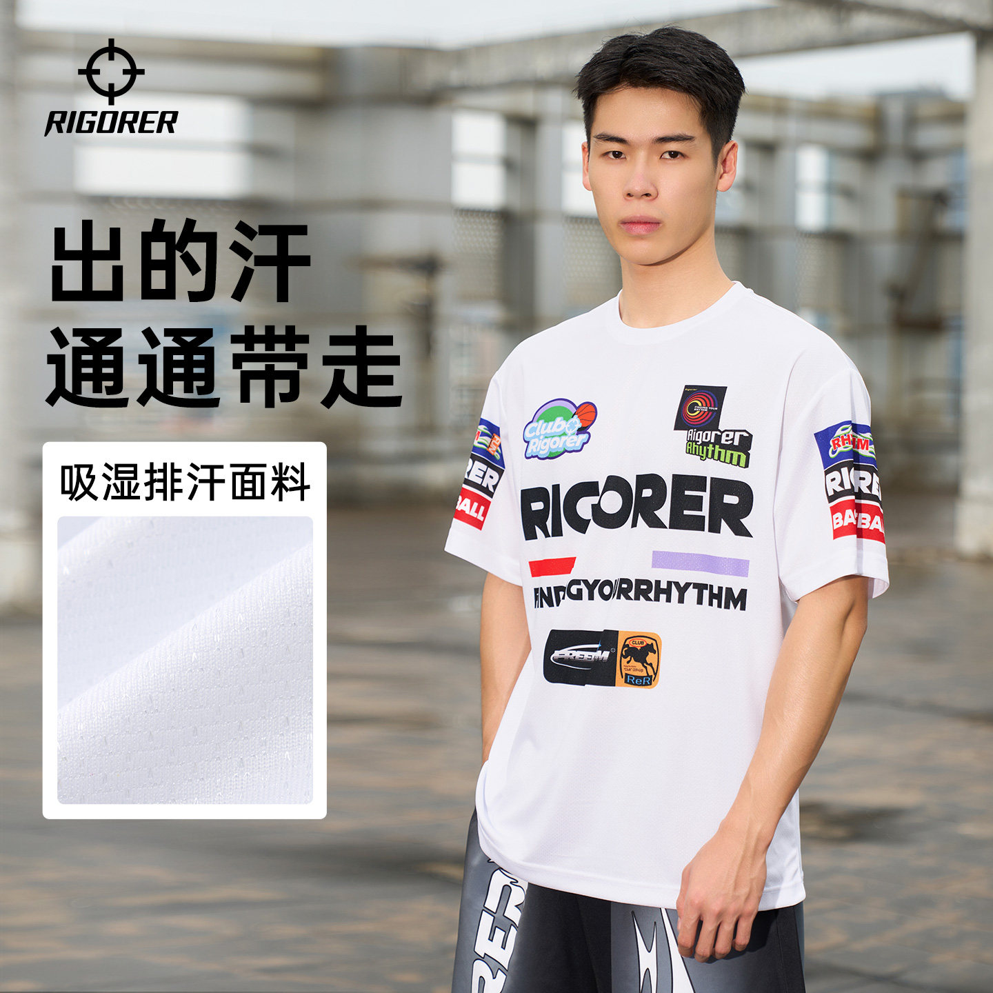 准者美式速干运动短袖夏季男新款机车风投篮训练服宽松T恤