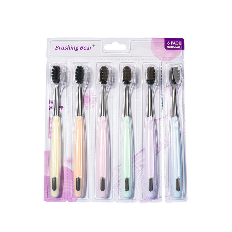刷牙熊软毛牙刷成人炭丝大孔高密牙刷6支装多规格