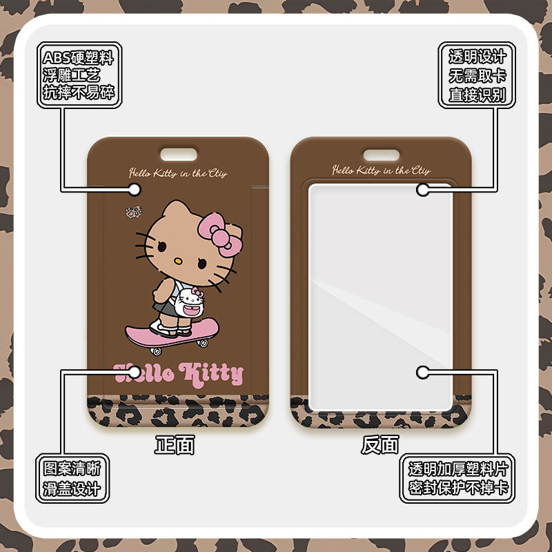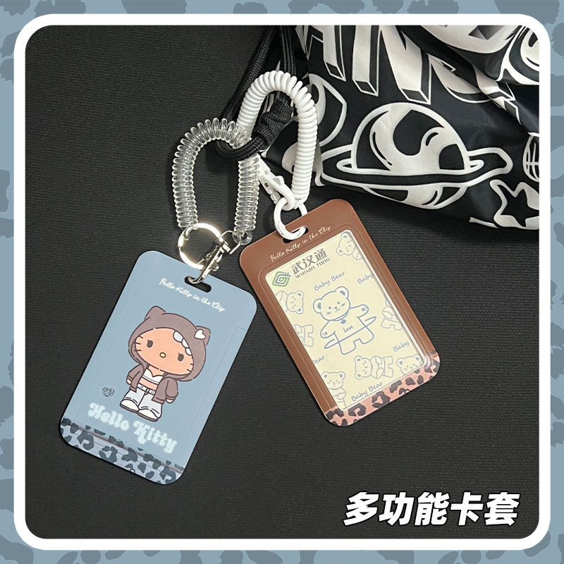 宋雨琦同款黑皮hellokitty卡通卡套学生饭卡校园卡公交地铁卡保护套门禁卡套伸缩挂脖绳
