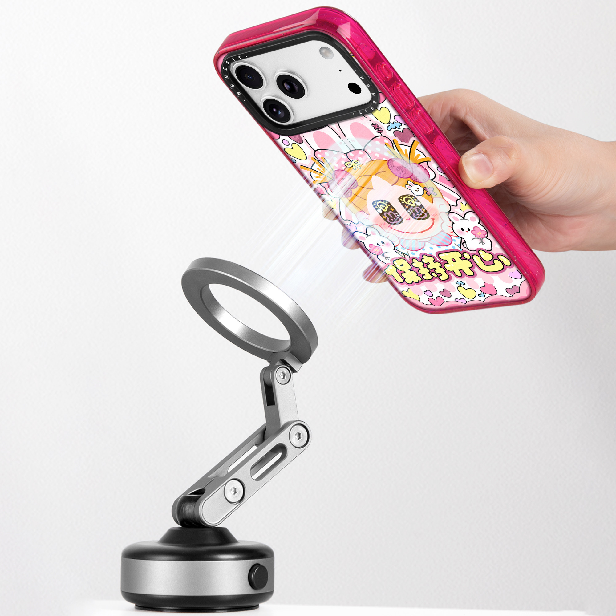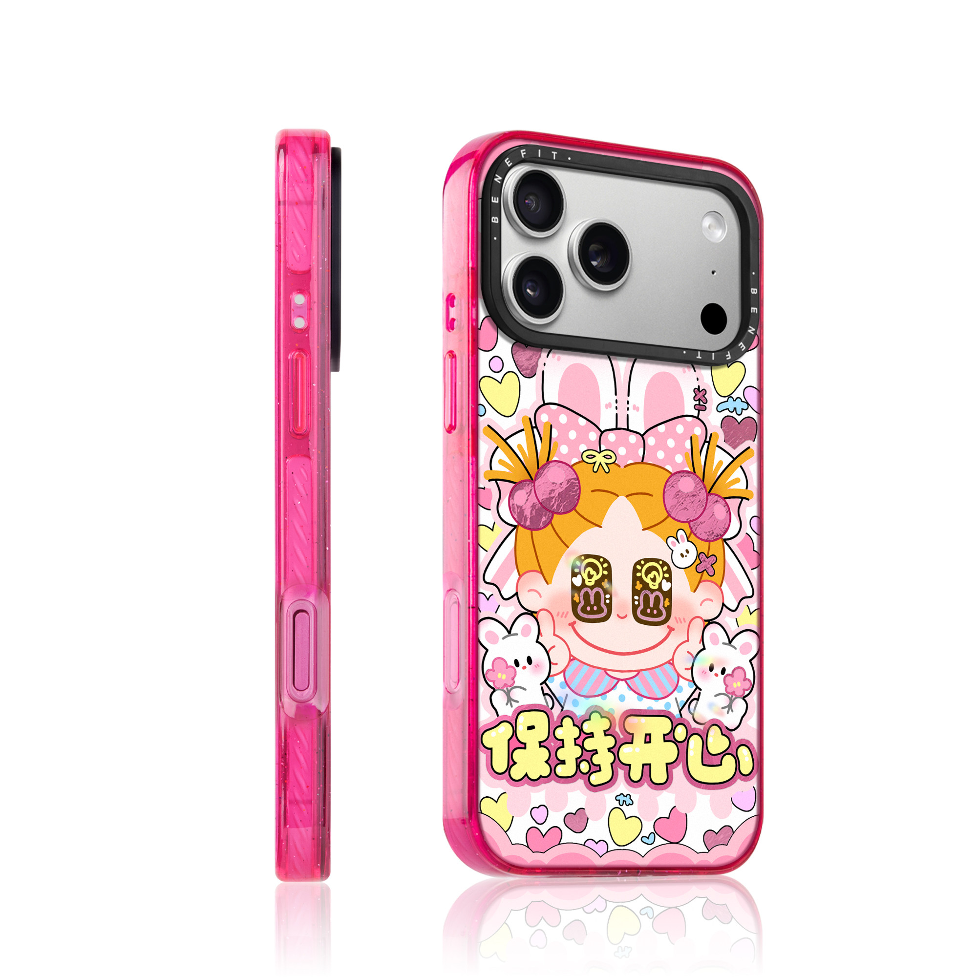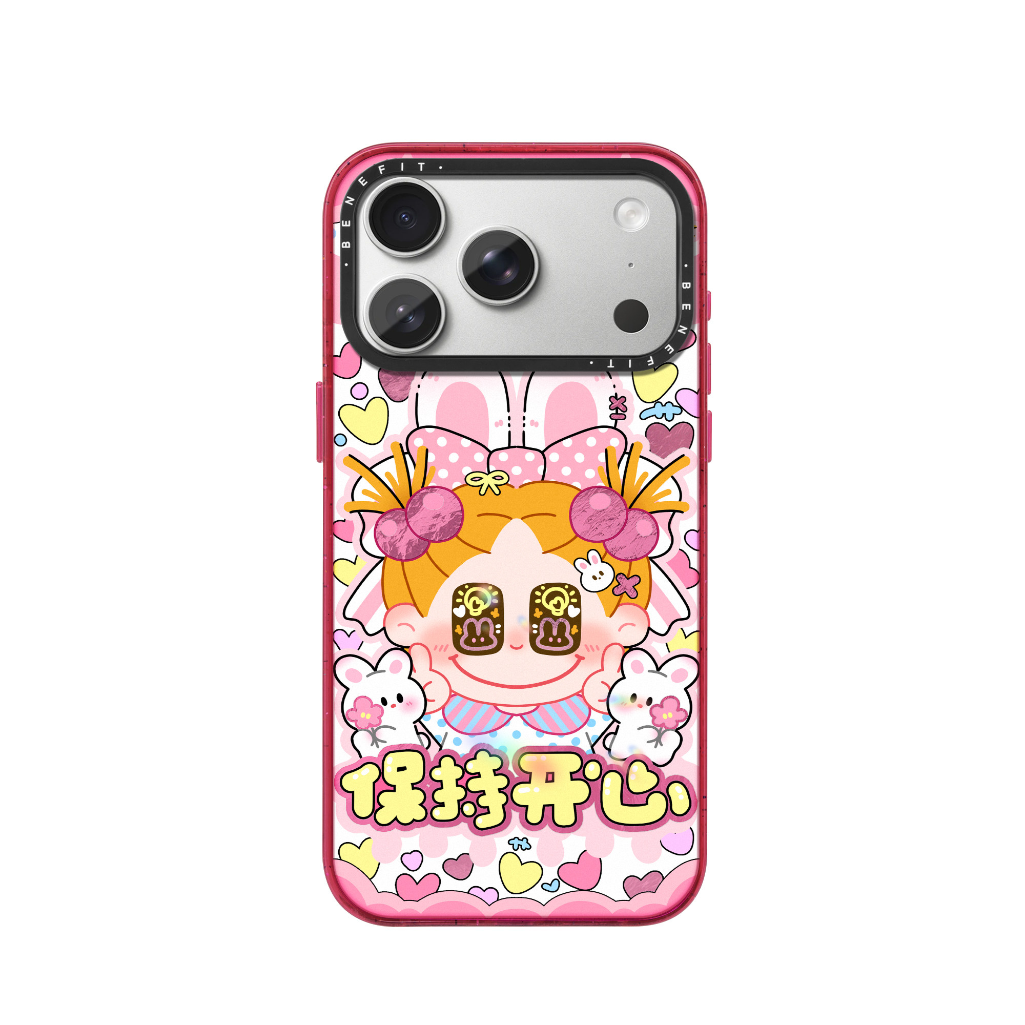 benefit保持开心兔兔女孩适用于iphone17promax苹果16PRO晶盾磁吸手机壳15新款13套14冰川纹12防摔彩色边框