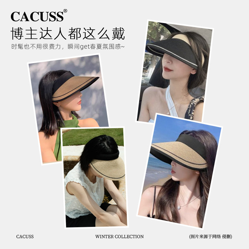 CACUSS帽子女夏季新品防晒空顶帽户外沙滩太阳帽发箍帽草编遮阳帽