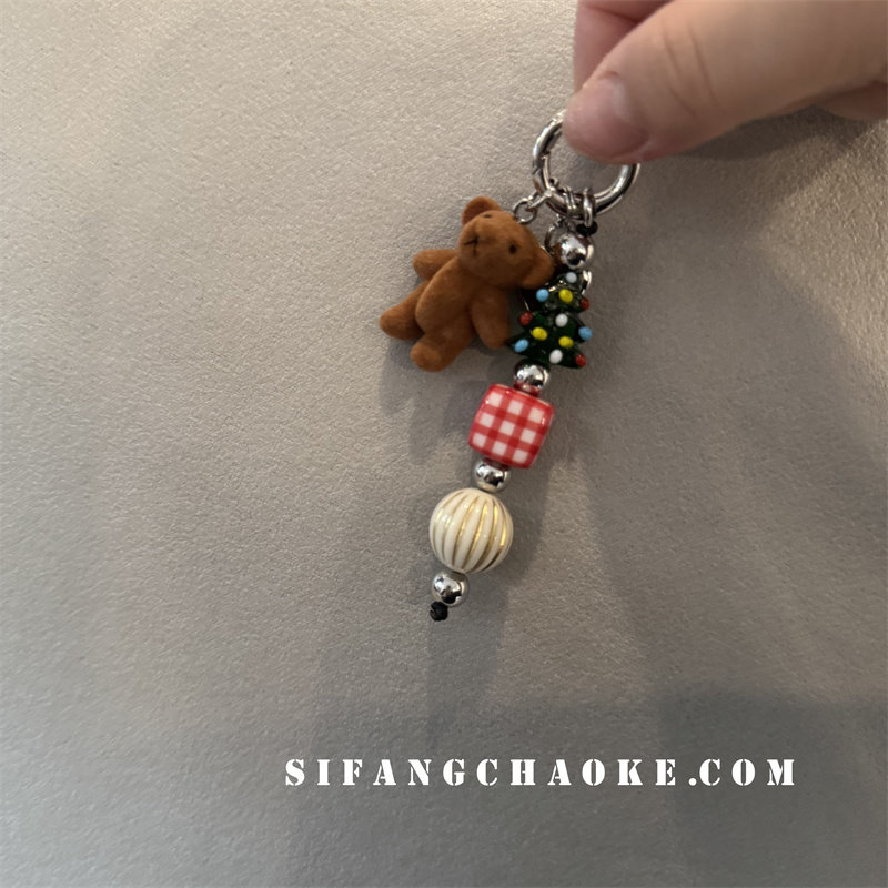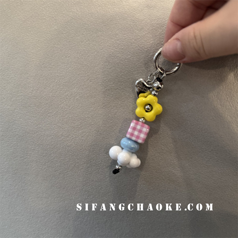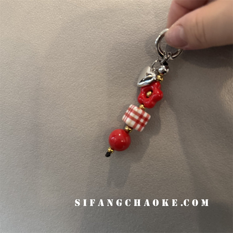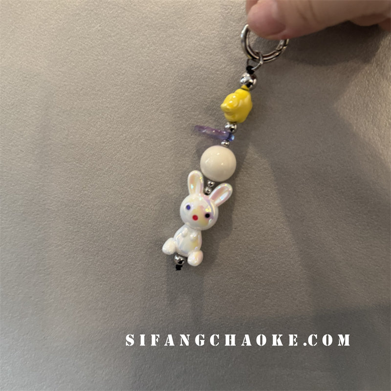 新品可爱小众兔子串珠橡皮爱心蝴蝶结苹果女绳挂件钥匙扣耳机套