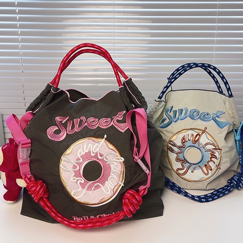 日系同款ball chain刺绣大容量购物袋尼龙防水托特包手提单肩女包