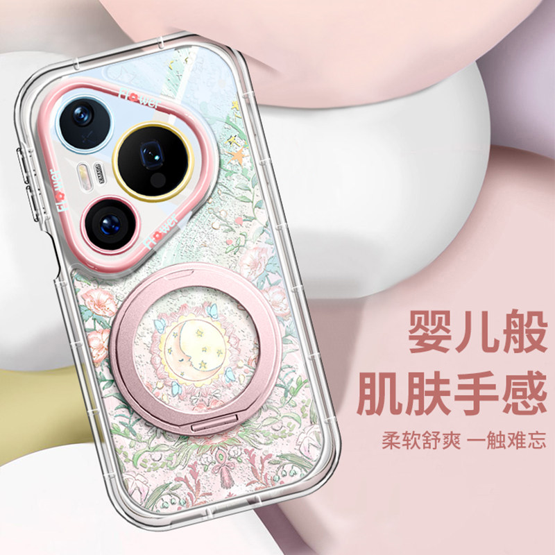 沃艾尼适用华为pura80pro手机壳360旋转支架p80pro+复古日韩p70ultra高级感p60p液态硅胶p50带挂绳p40新款p30