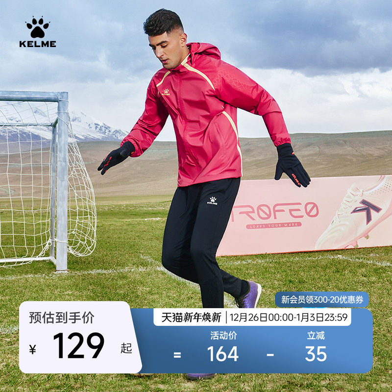 KELME卡尔美足球训练风雨衣25秋冬连帽运动风衣开衫外套夹克冲锋