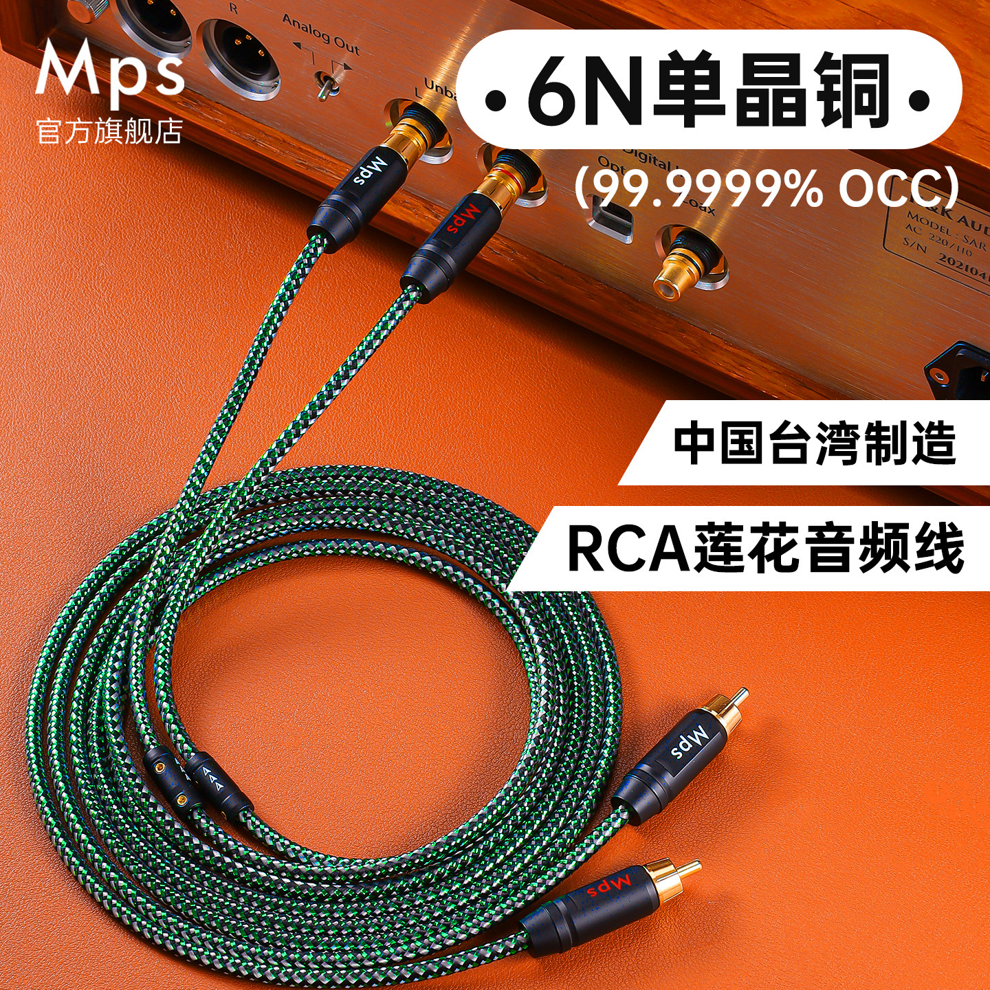 Mps发烧级6N单晶铜RCA双莲花二对二公对公功放HiFi音响信号音频线