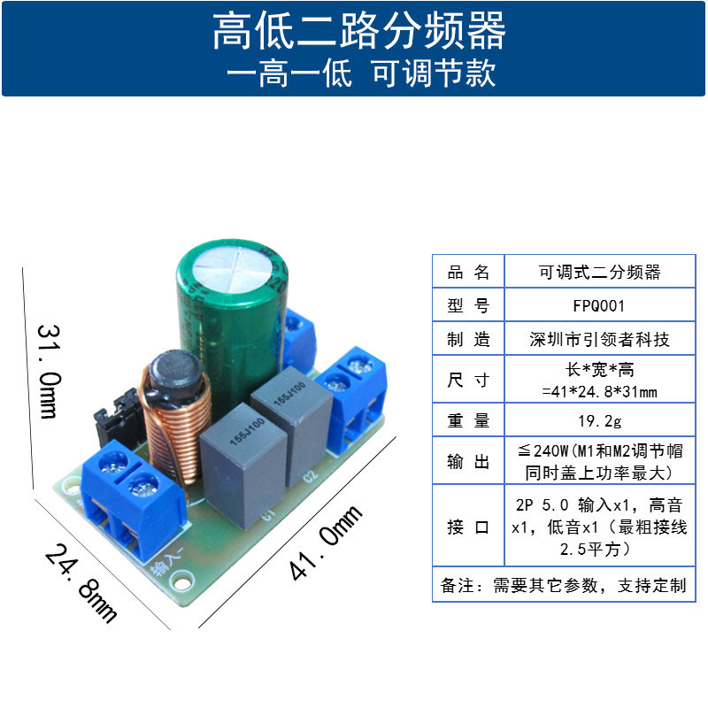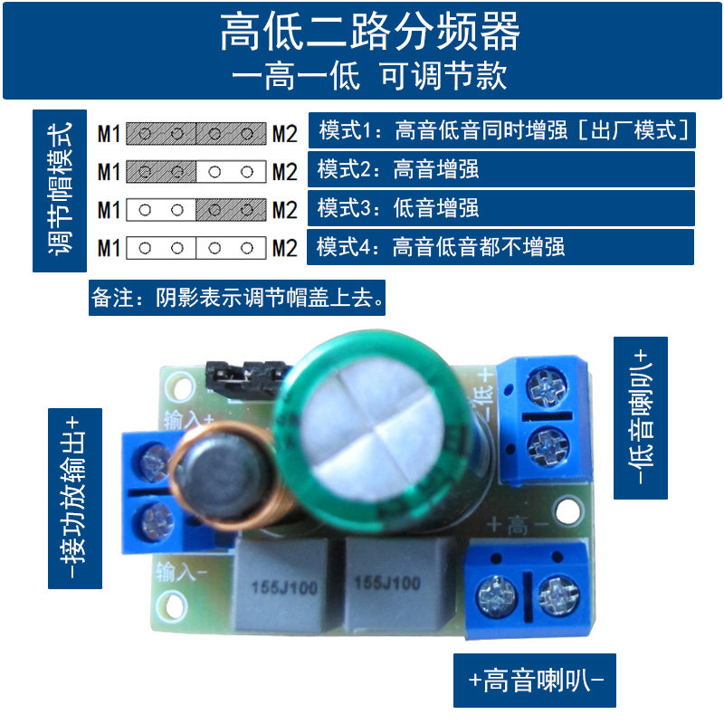高低音喇叭二分频器模块HIFI发烧级可调节DIY音箱音响二路分音板