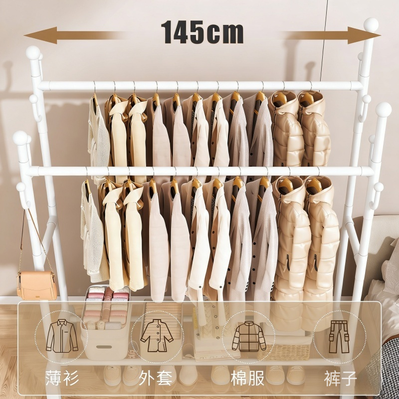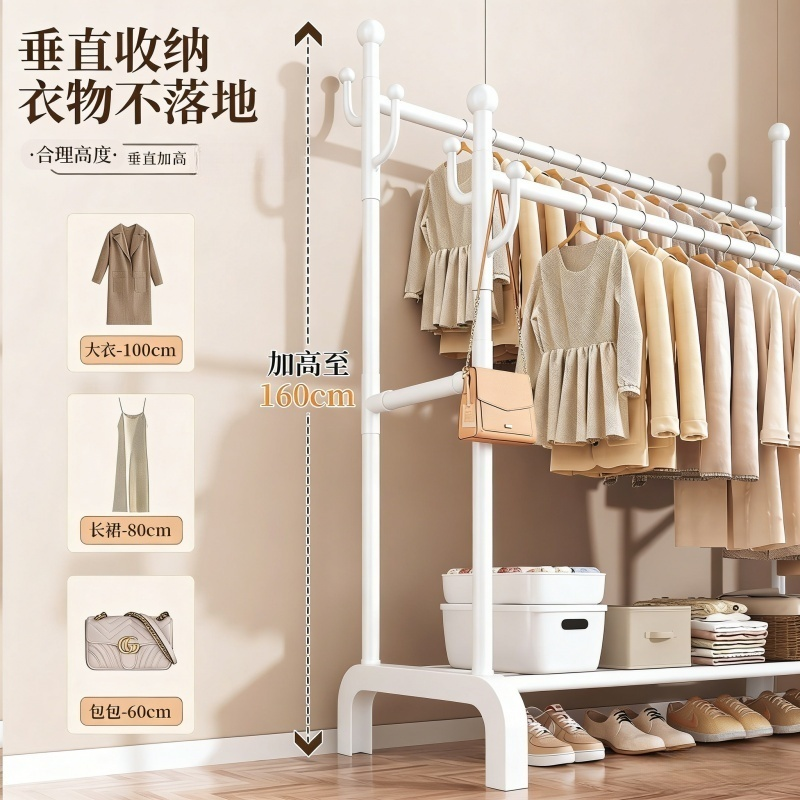 晾衣架落地家用卧室挂衣架宿舍室内双杆双层晒衣服架子简易凉衣杆