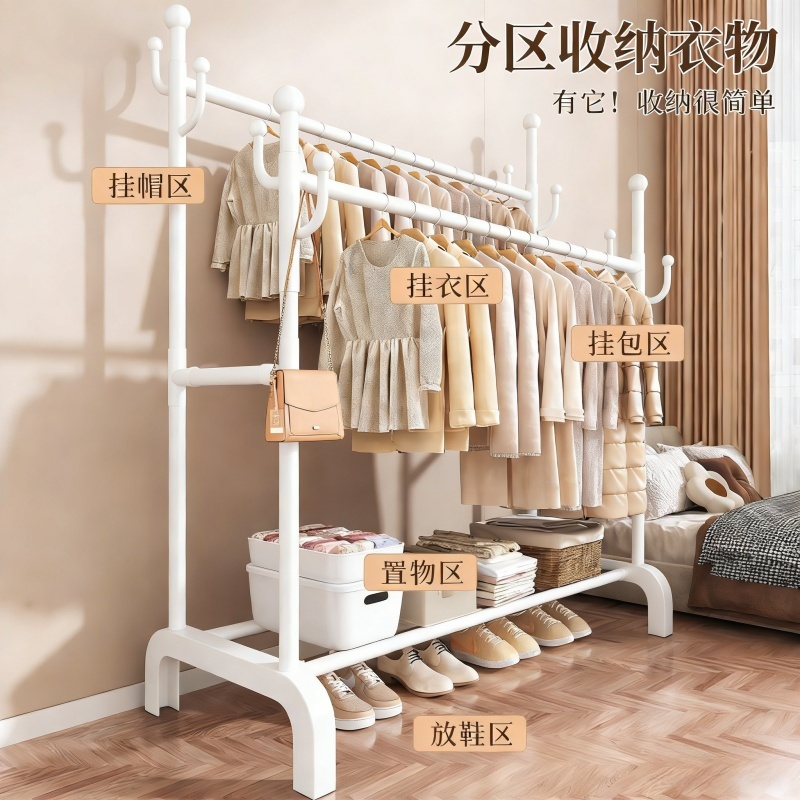 卧室衣帽架落地简易家用阳台晒衣服收纳置物宿舍室内床边挂衣架子