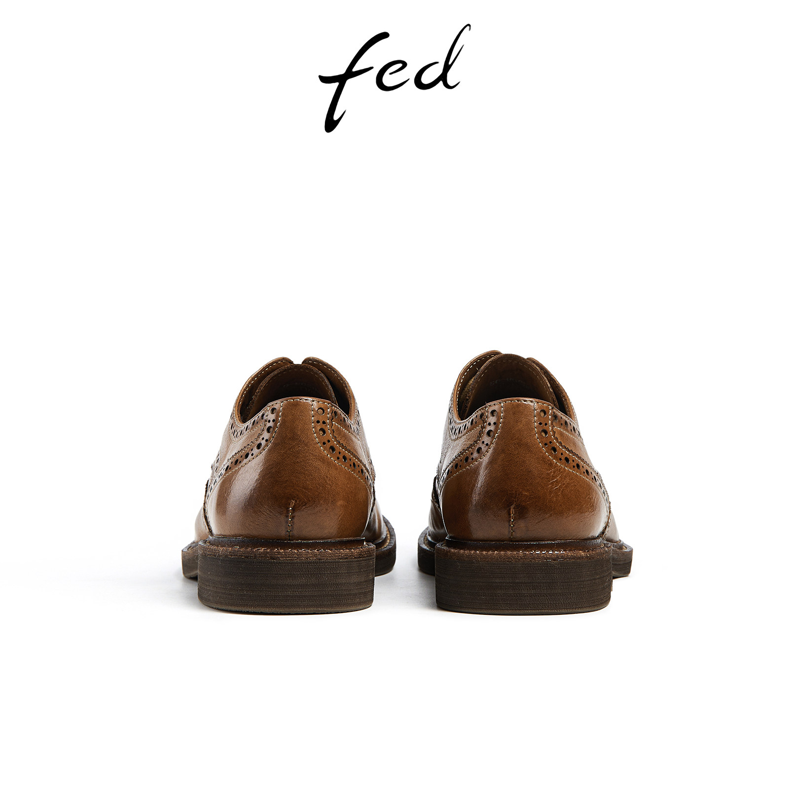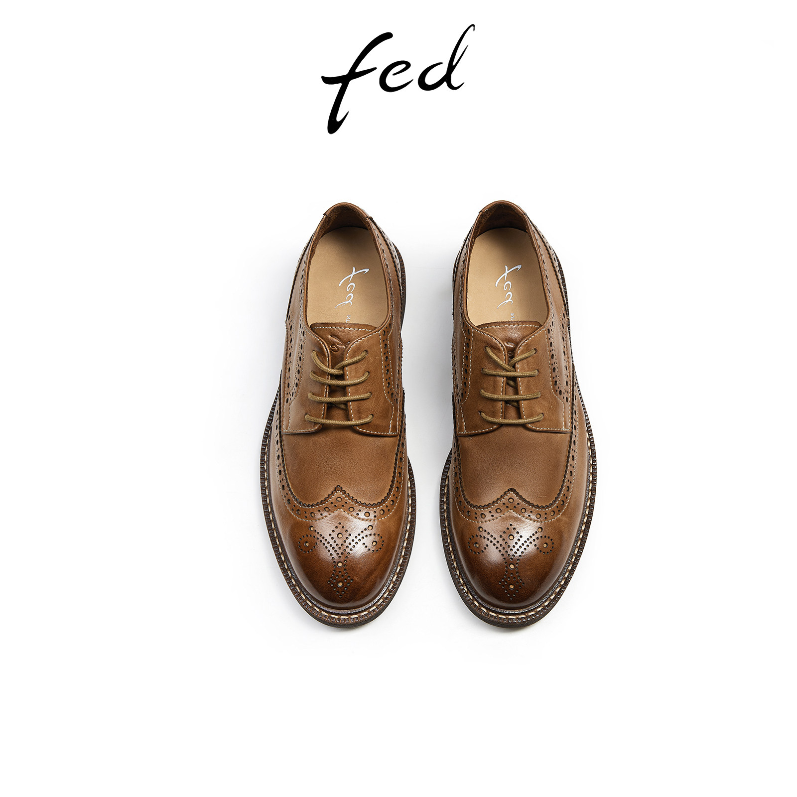 fed英伦风皮鞋春季新款女鞋粗跟深口单鞋布洛克鞋女D1230-YAB209