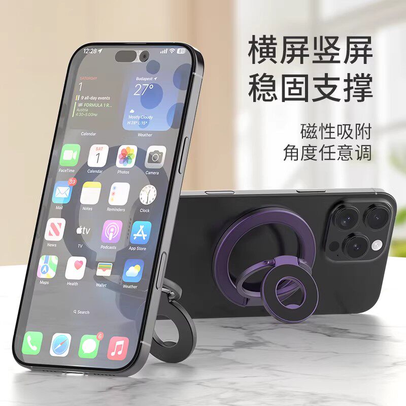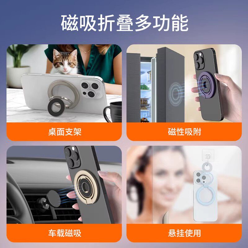 新款手机支架magsafe双面磁吸指环扣强力车载多功能支撑旋转桌面
