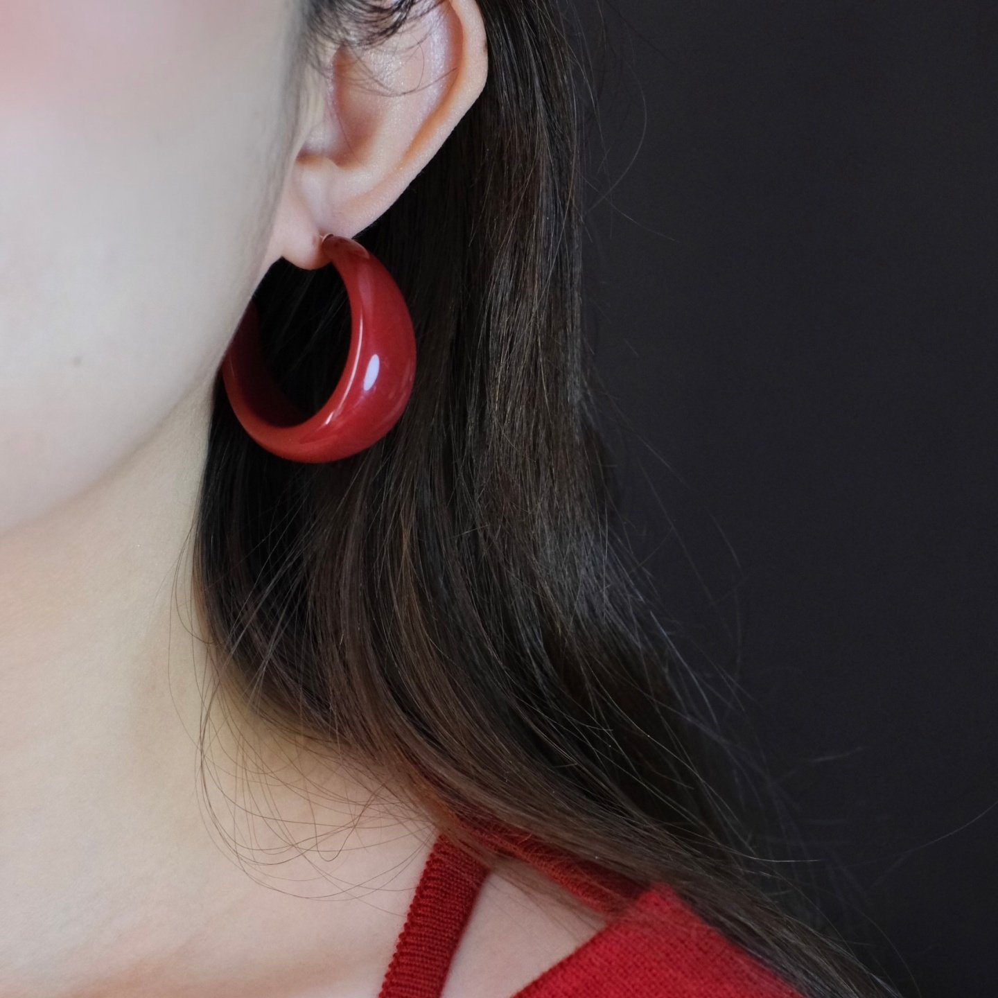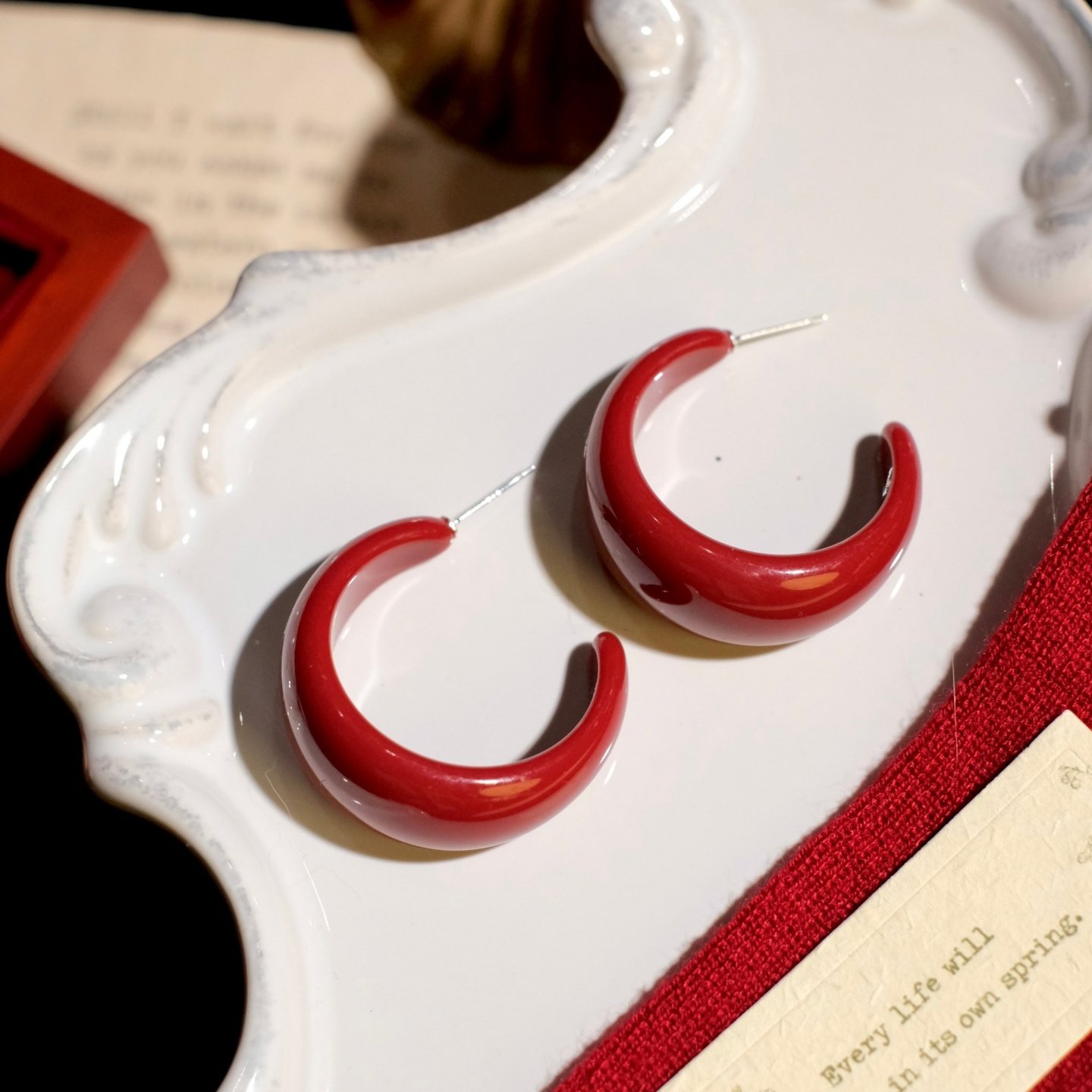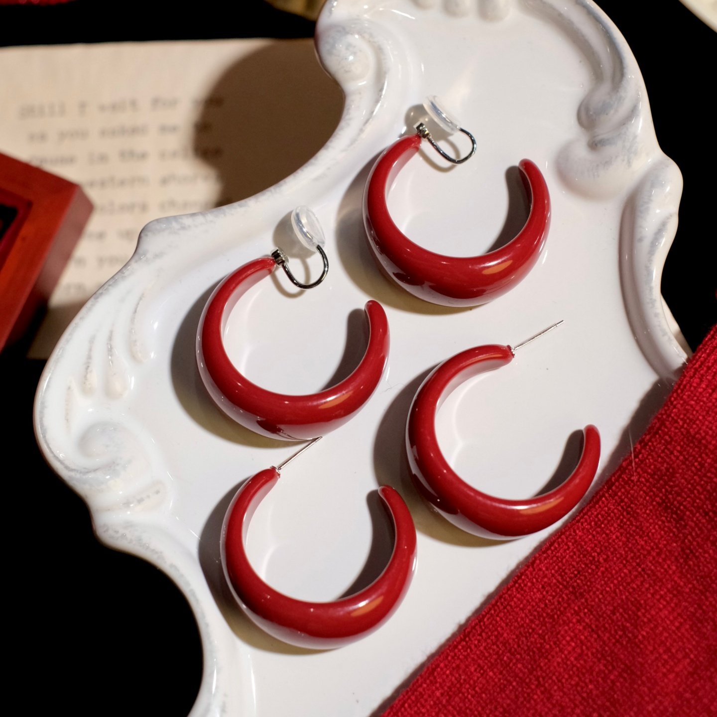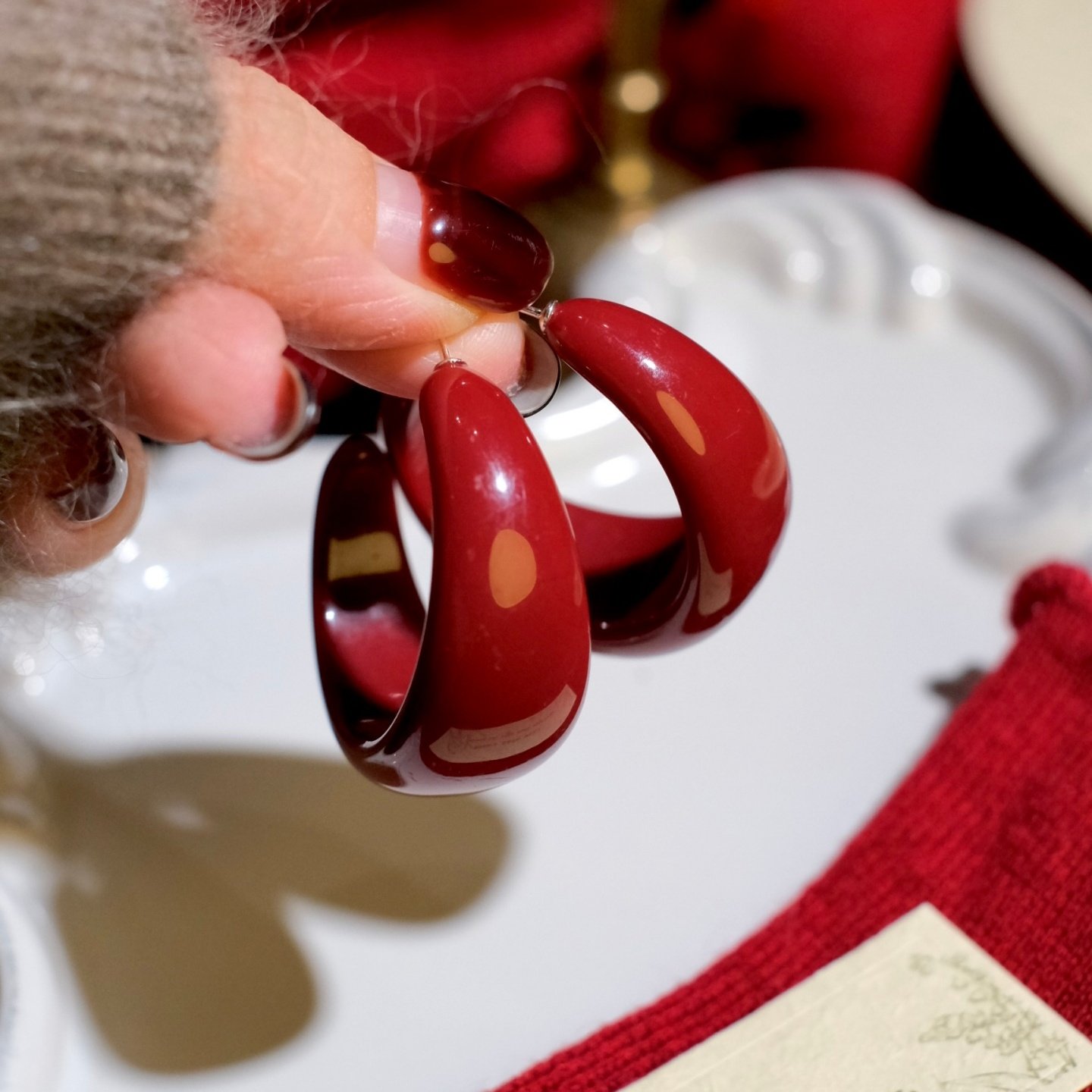 《时尚杂志》秋冬安可拉红色复古大耳圈耳环耳夹显白耳饰新年圣诞