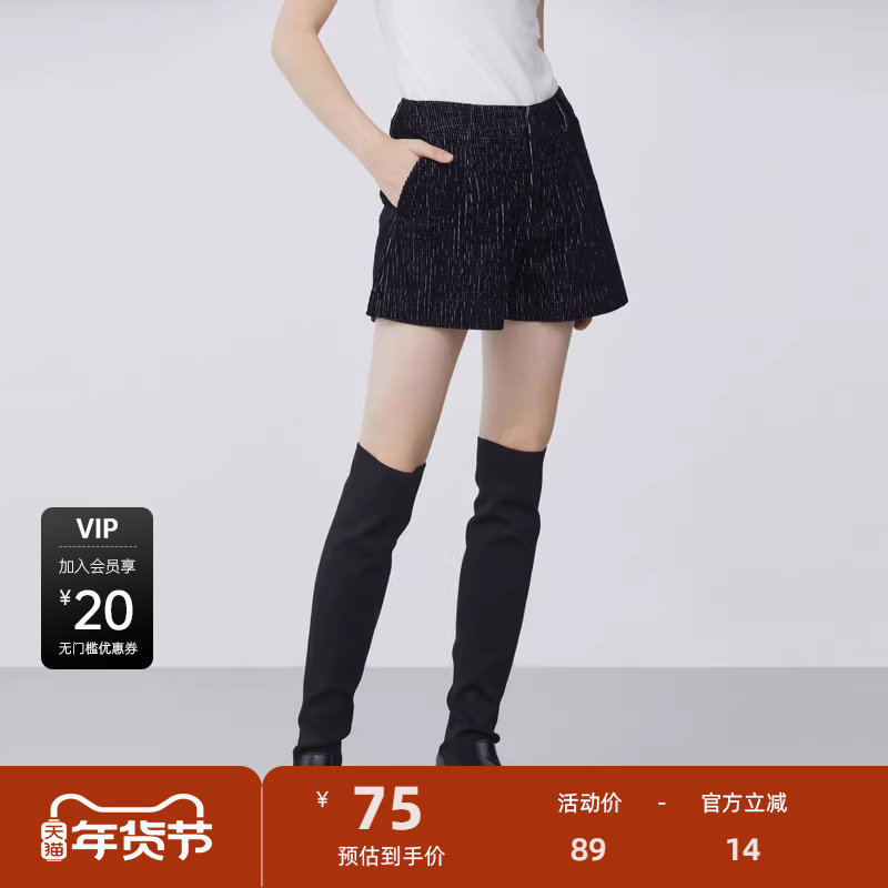 sdeer圣迪奥女装秋秋季时尚插袋撞色条纹灯芯绒A字短裤S21360901