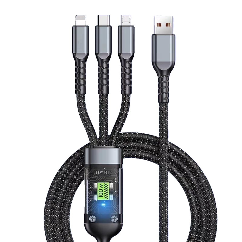 【100W超级快充】数据线三合一拖三充电器一拖3车载通用手机usb多头二用多功能适用华为苹果typec安卓6A