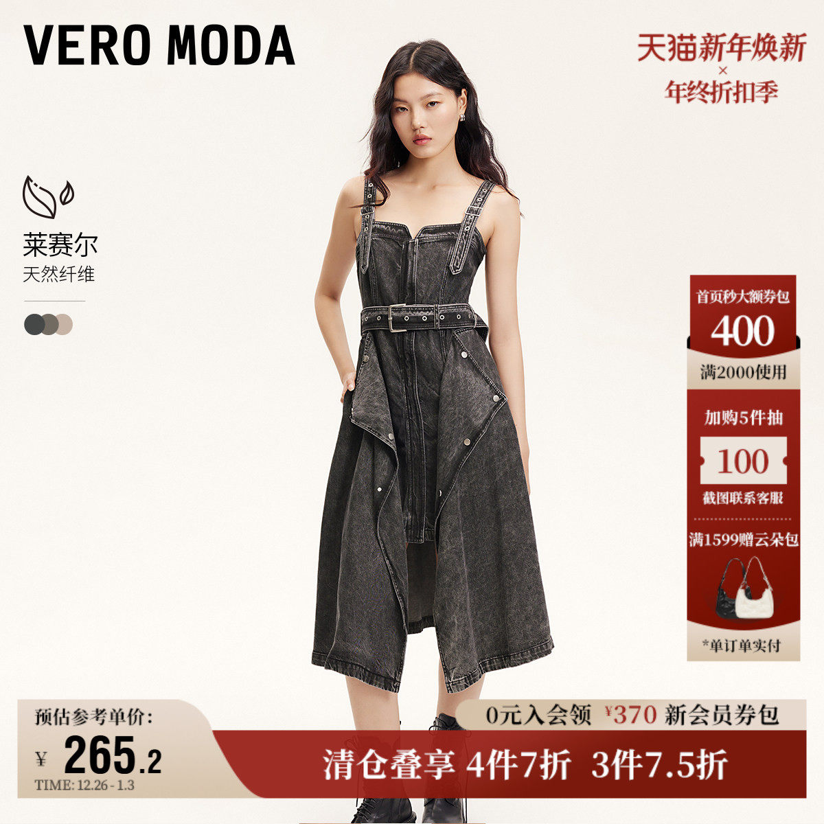 Vero Moda奥莱连衣裙秋冬新商场同款吊带牛仔裙水洗莱赛尔废土风