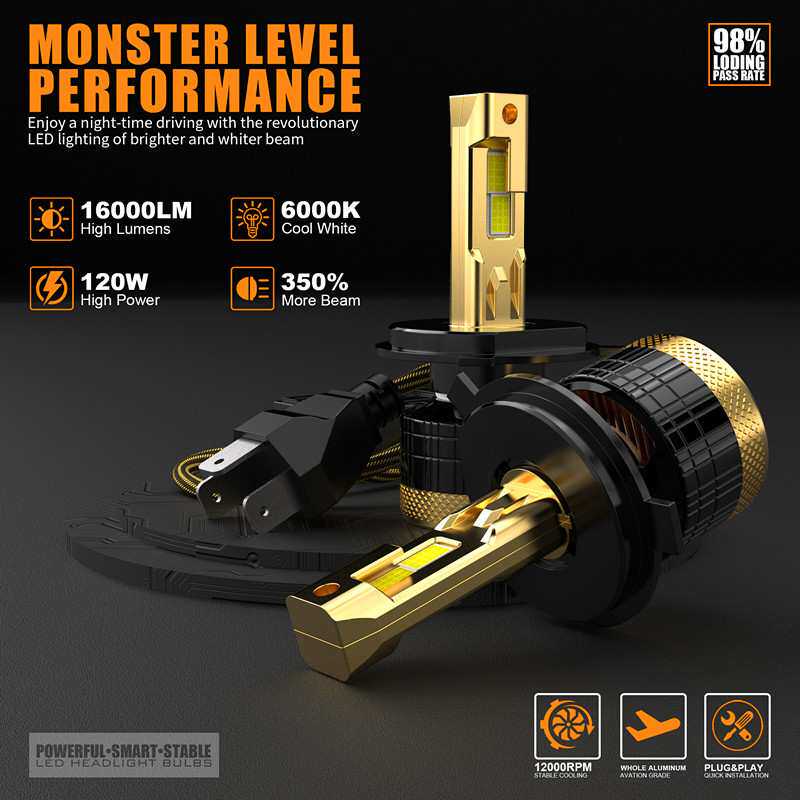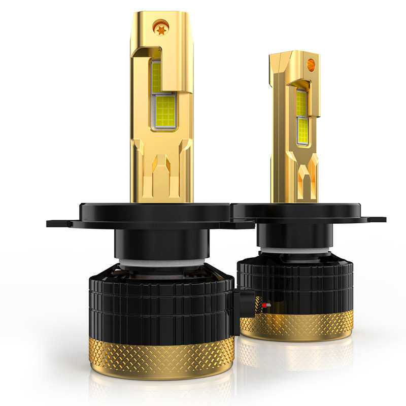 新款高亮240WLED汽车前照灯大灯金色版H4 高速静音风扇散热