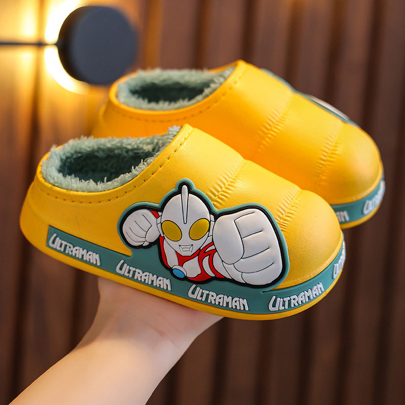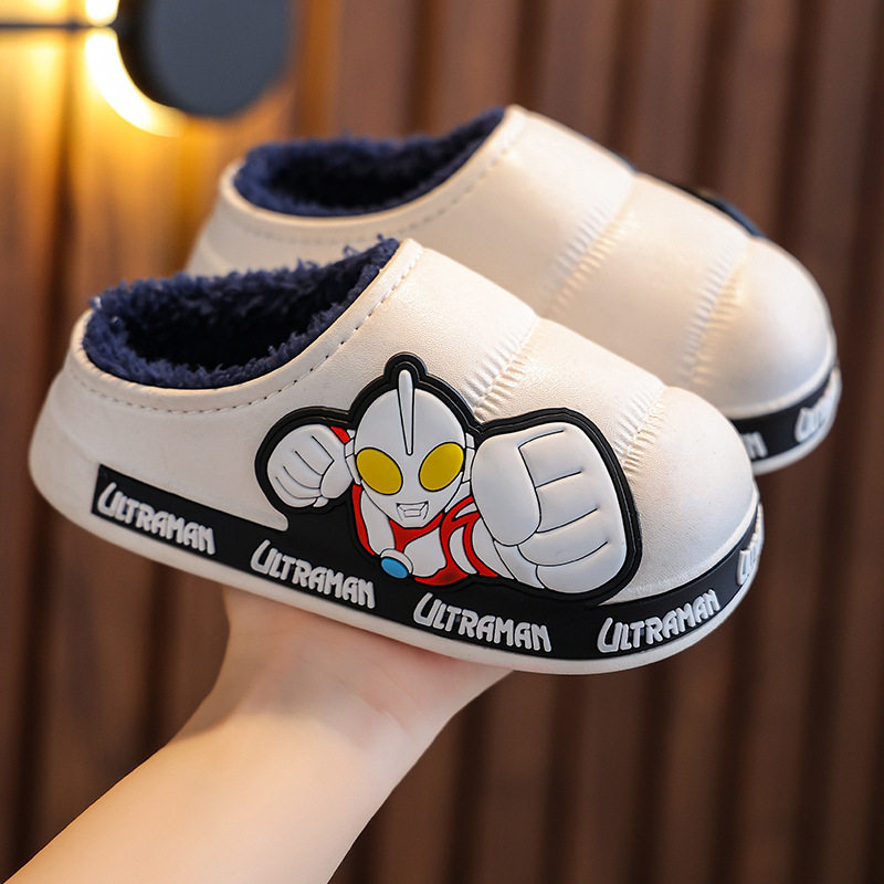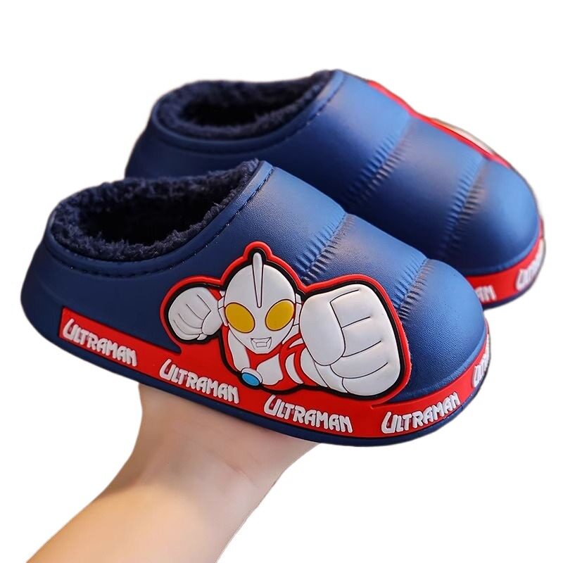2025奥特慢儿童棉拖鞋冬小孩中大男童宝宝防滑包跟棉鞋冬红色卡通