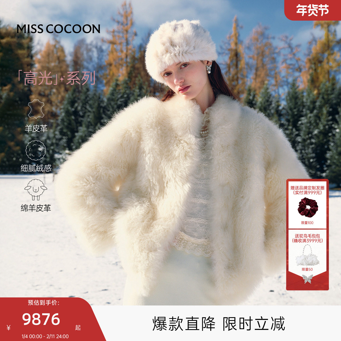 MISSCOCOON可可尼泰迪熊大衣外套女2025冬季新款山羊绒长毛皮草