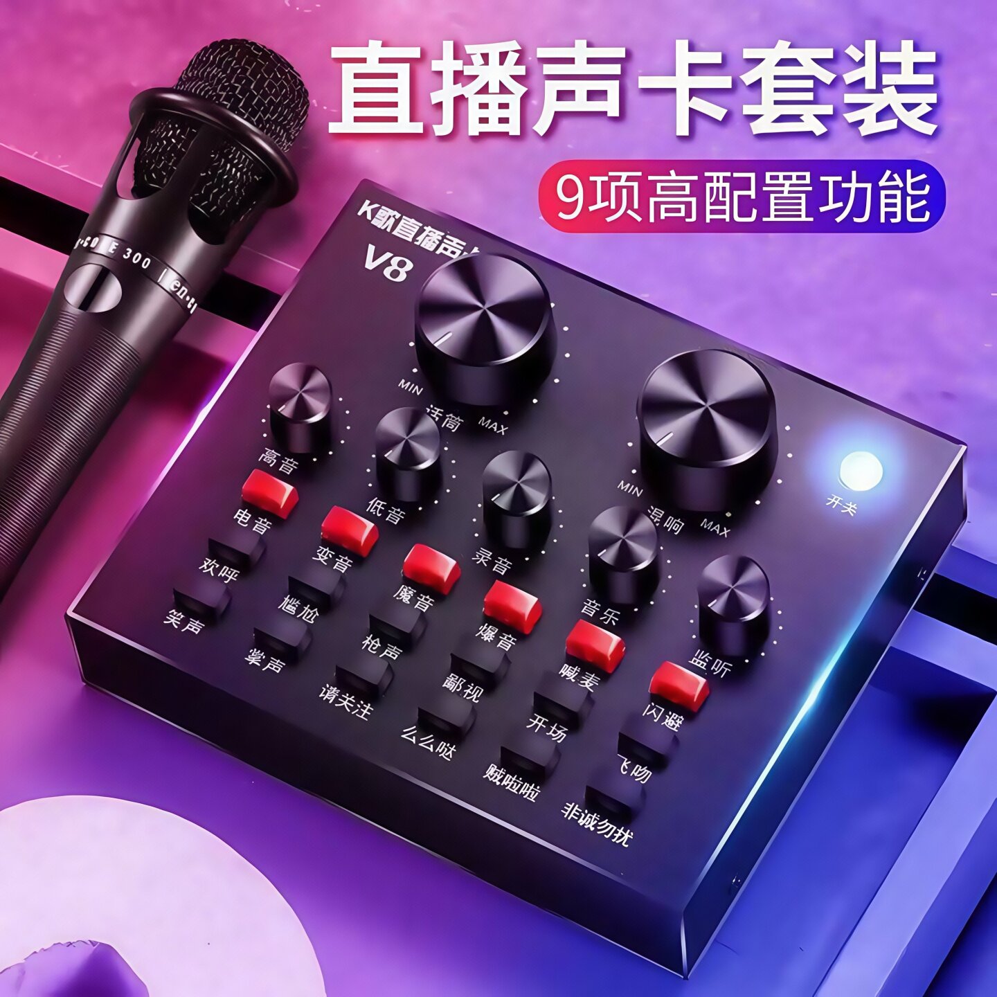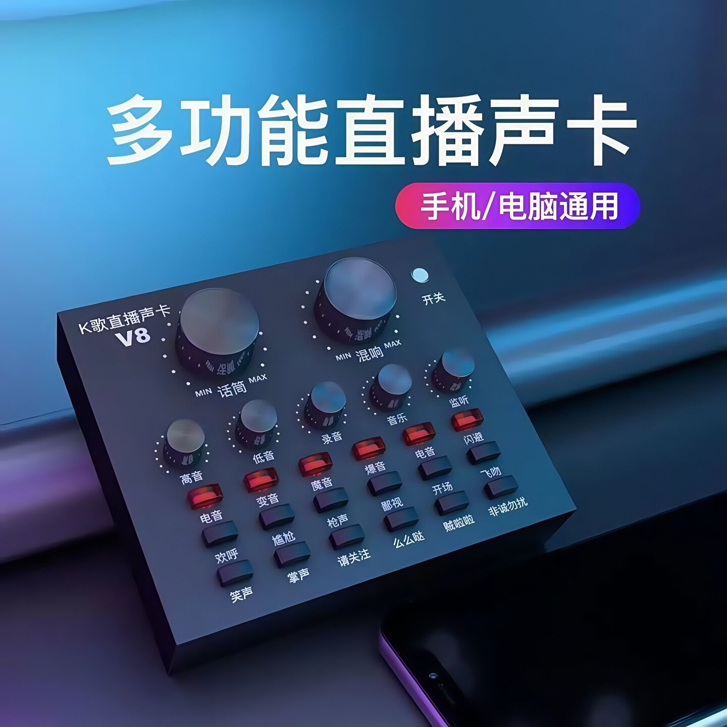 V8声卡通用专业唱歌全民全套变声器设备主播抖音变声话筒户外