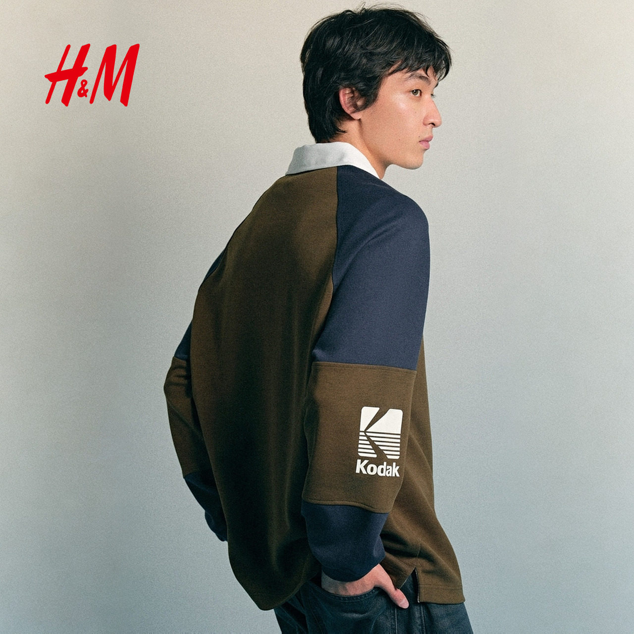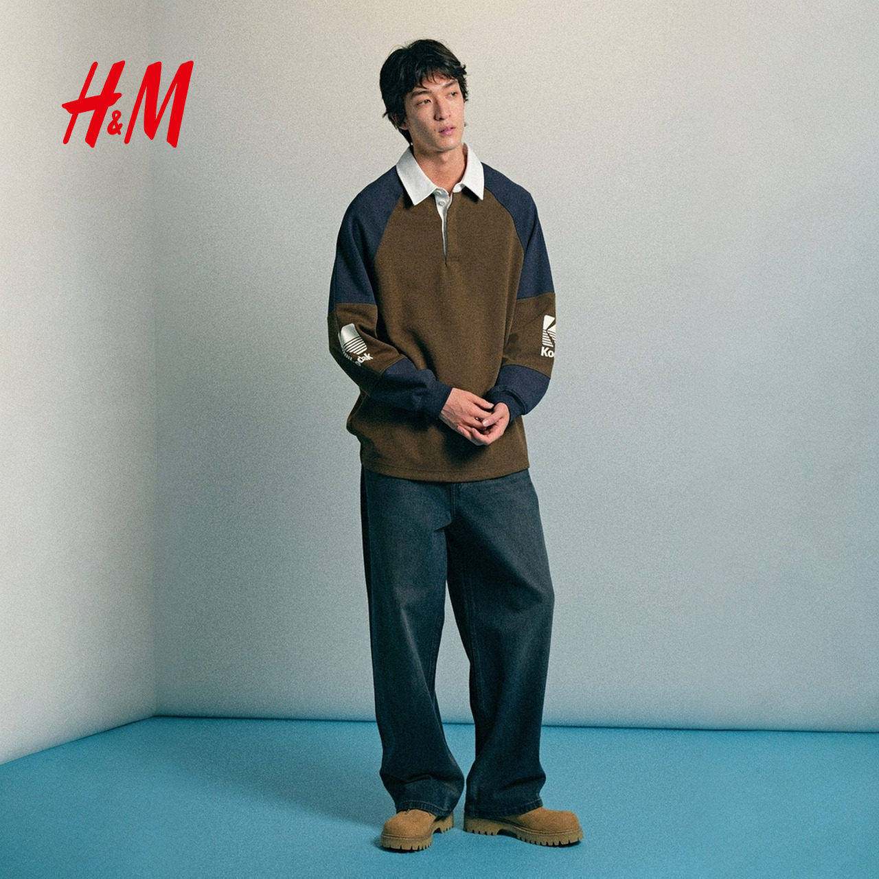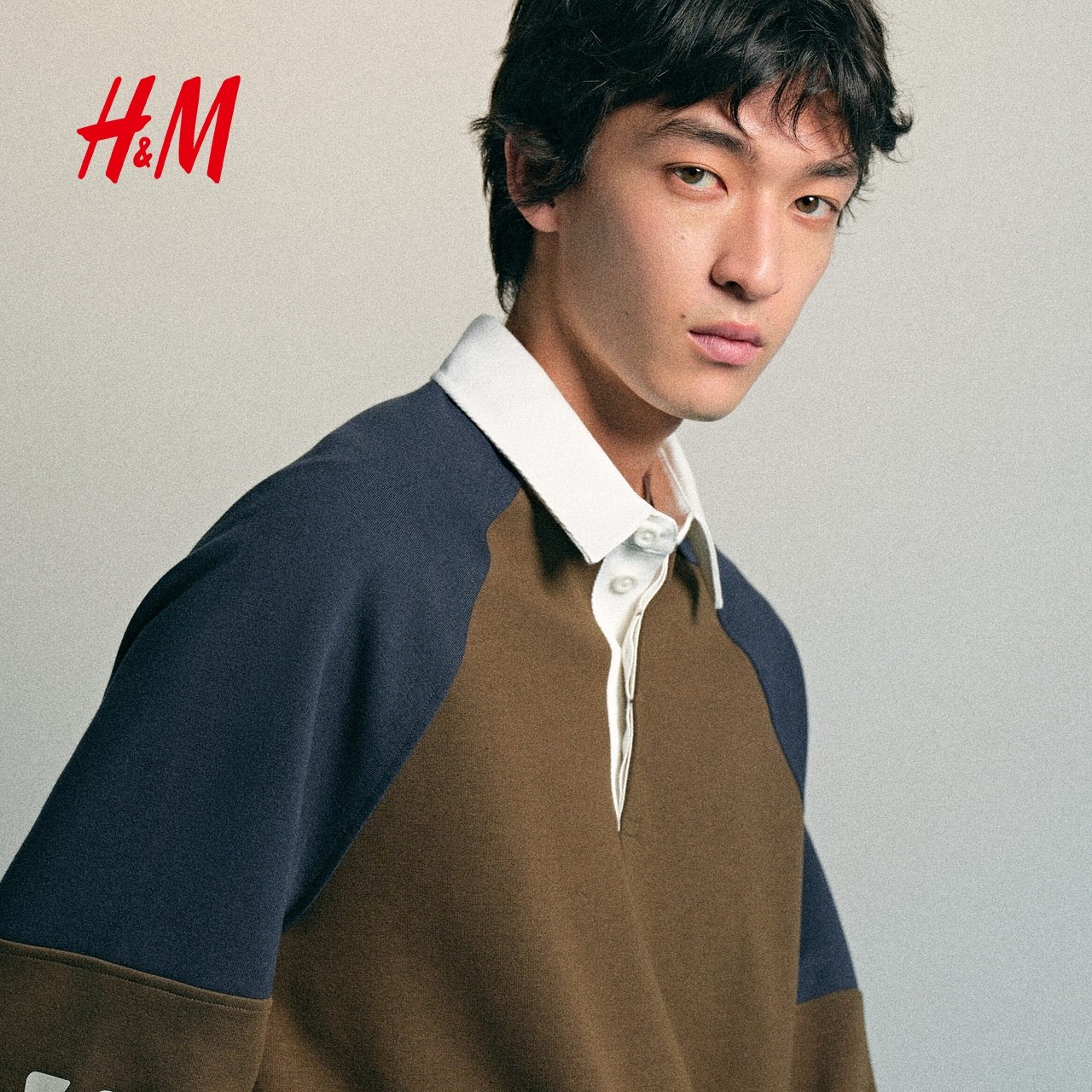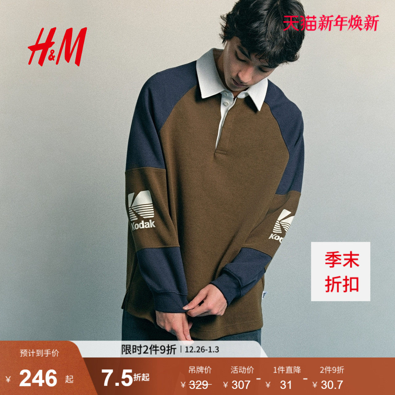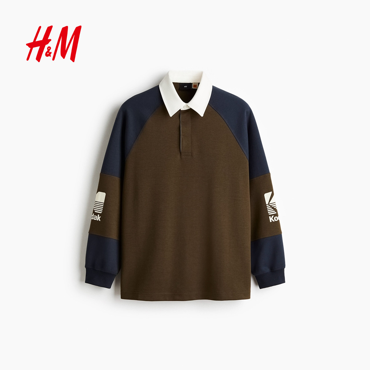 HM男装卫衣2025年冬季新款时尚宽松版型橄榄球衫1315413
