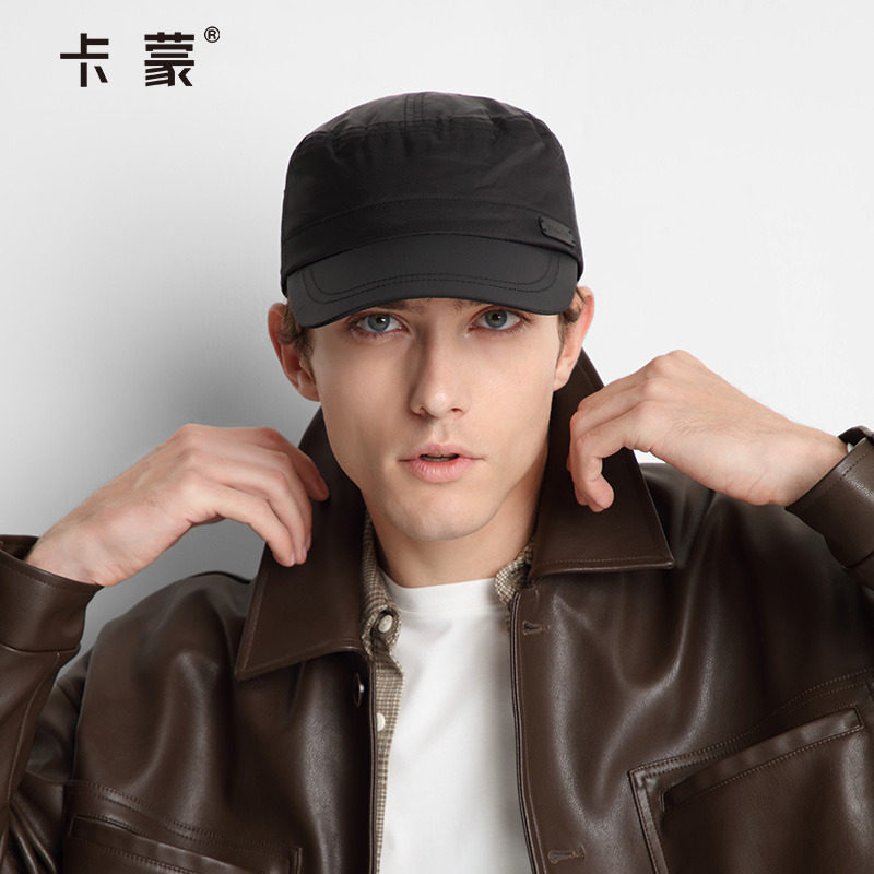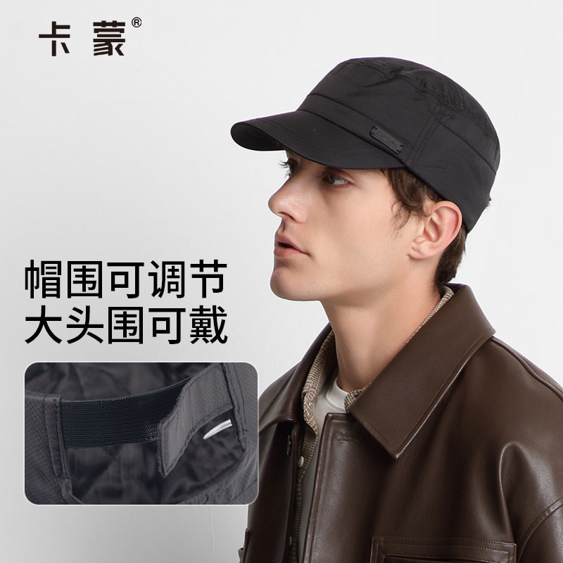 卡蒙男士大头围软顶保暖平顶鸭舌帽秋冬纯色百搭爸爸帽老年人棉帽