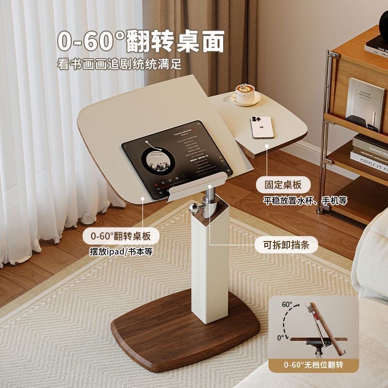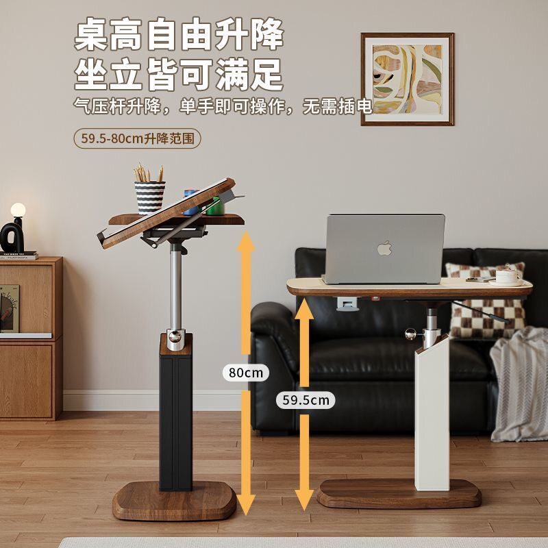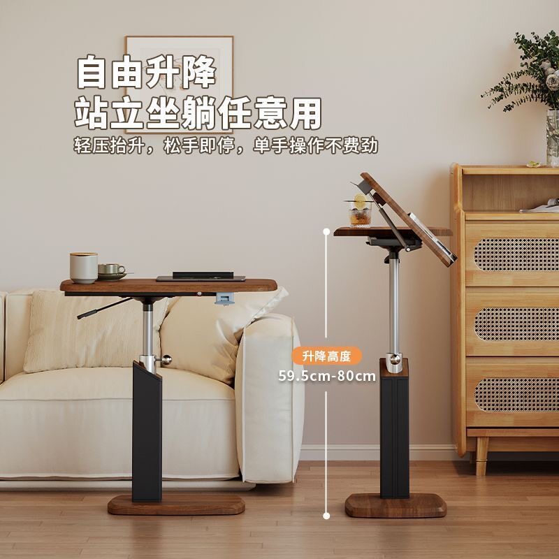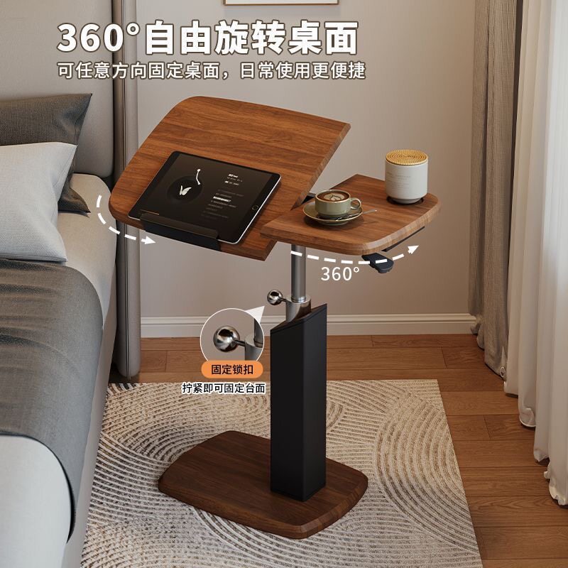 升降边几家用旋转床边桌中古风客厅茶几沙发边小桌子可移动电脑桌