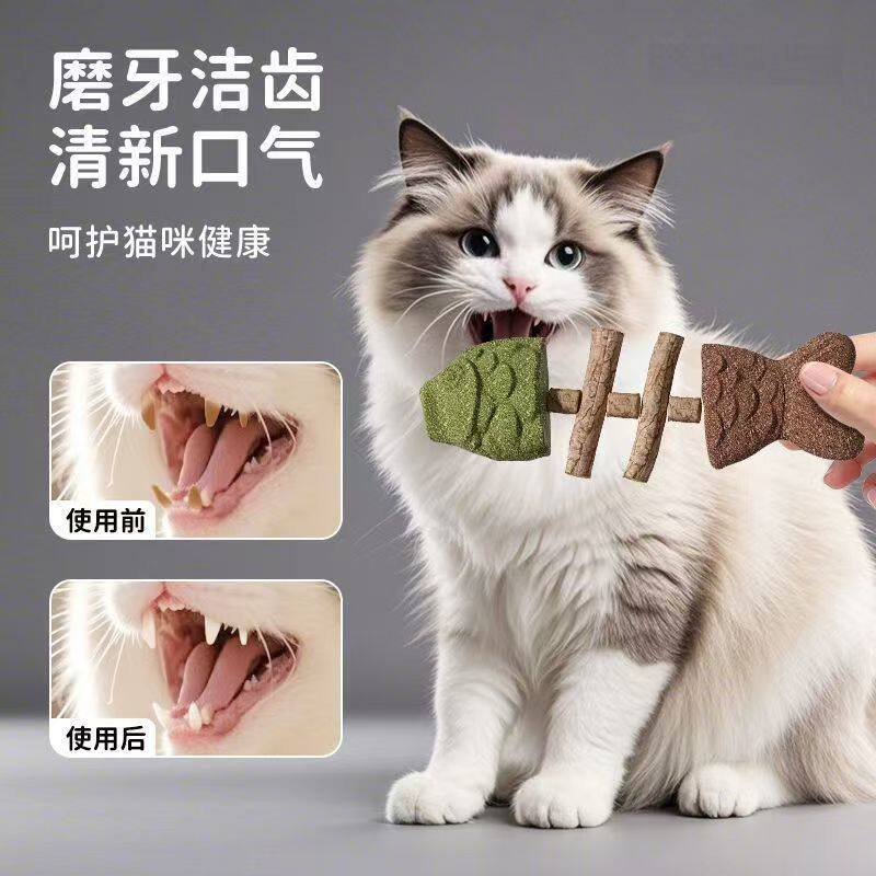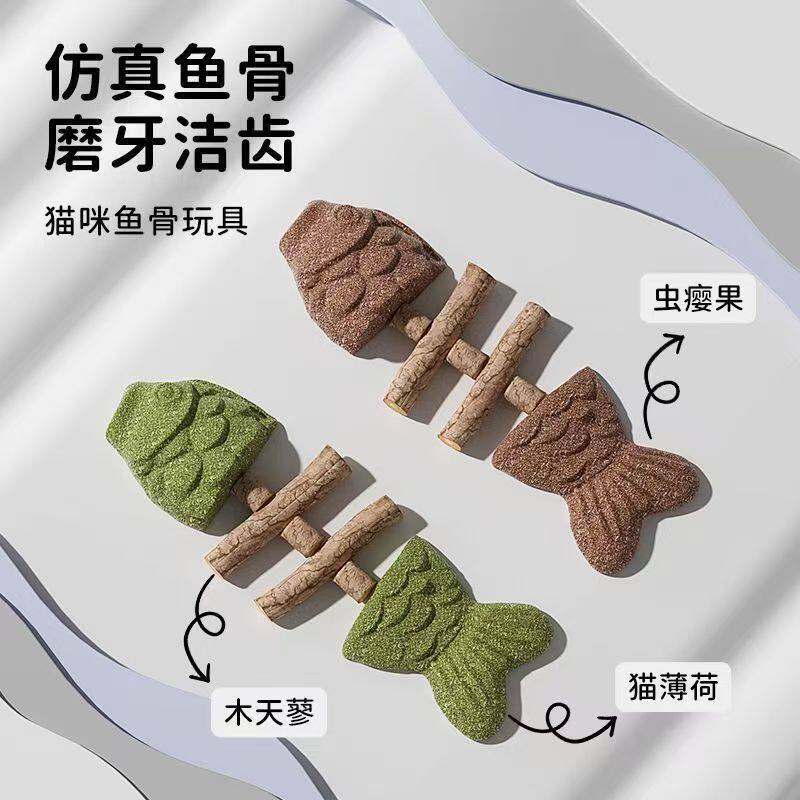 猫咪玩具鱼骨头猫薄荷磨牙棒磨牙耐咬自嗨解闷逗猫棒消耗虫瘿猫猫