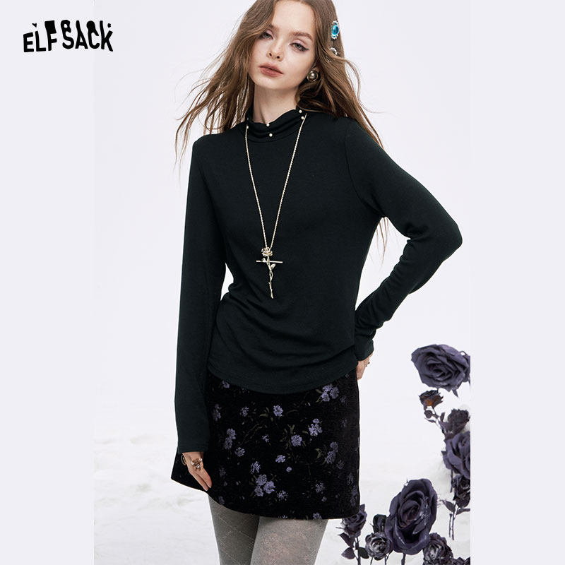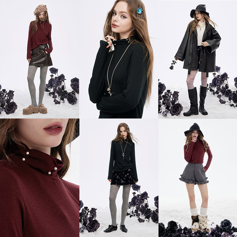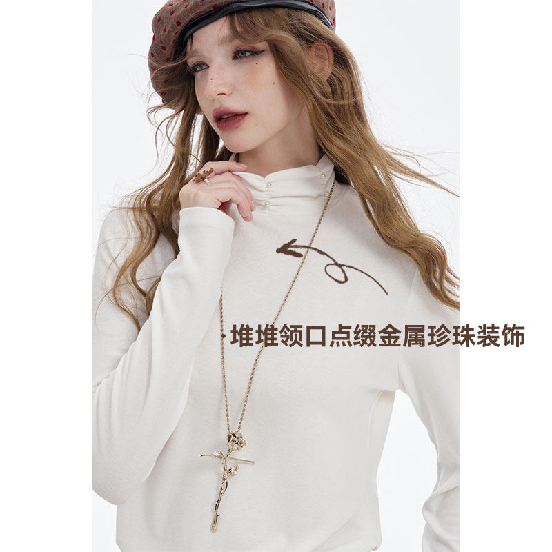 妖精的口袋复古堆堆领内搭打底衫女2025年冬新款修身t恤长袖上衣