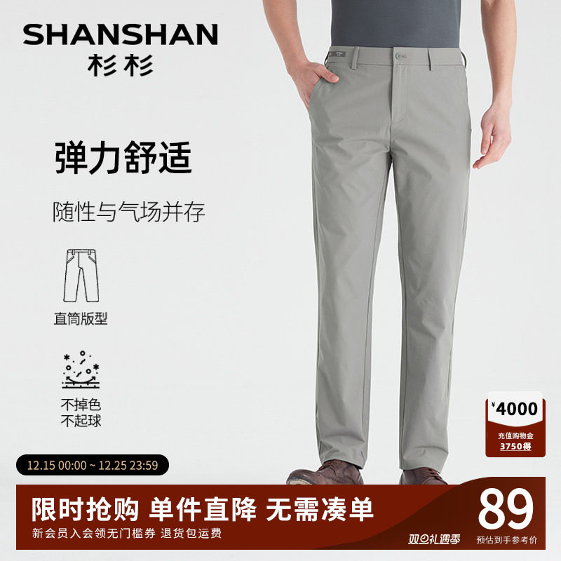 SHANSHAN杉杉男士弹力中腰休闲裤2025夏季新款商务易打理直筒长裤