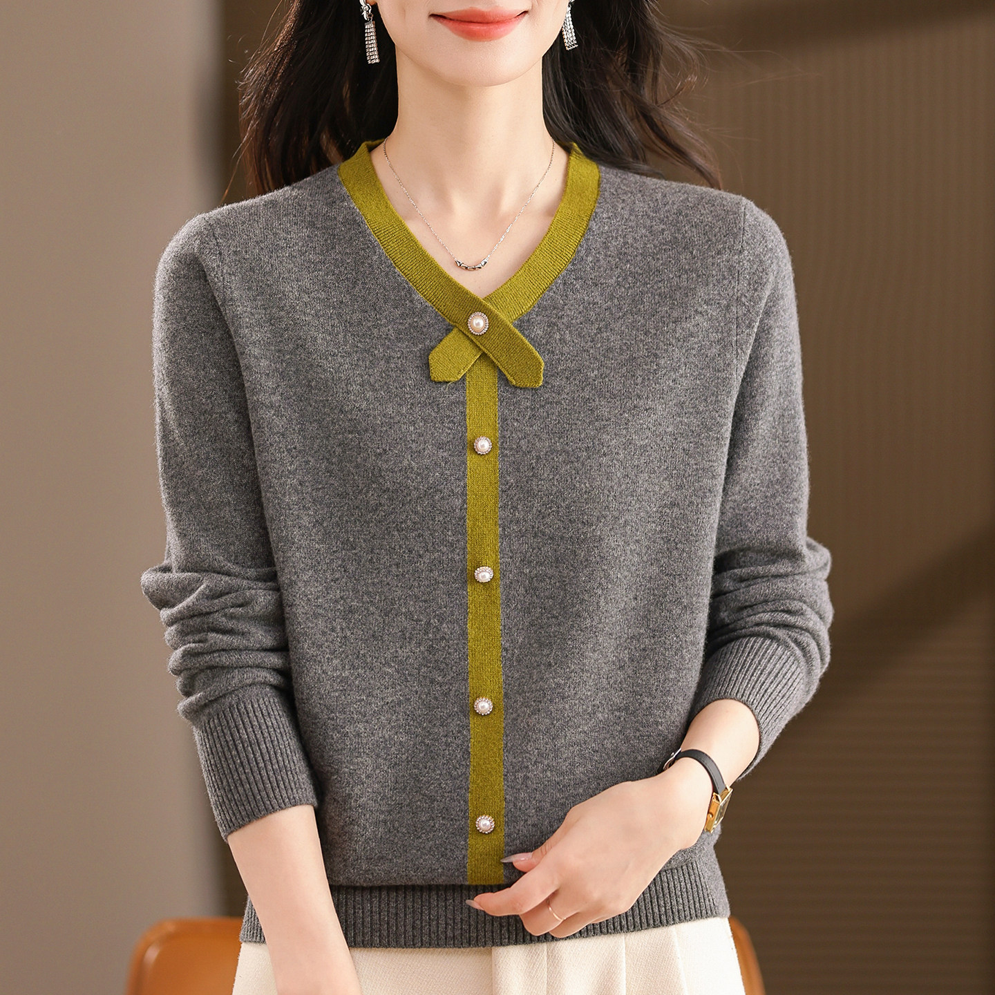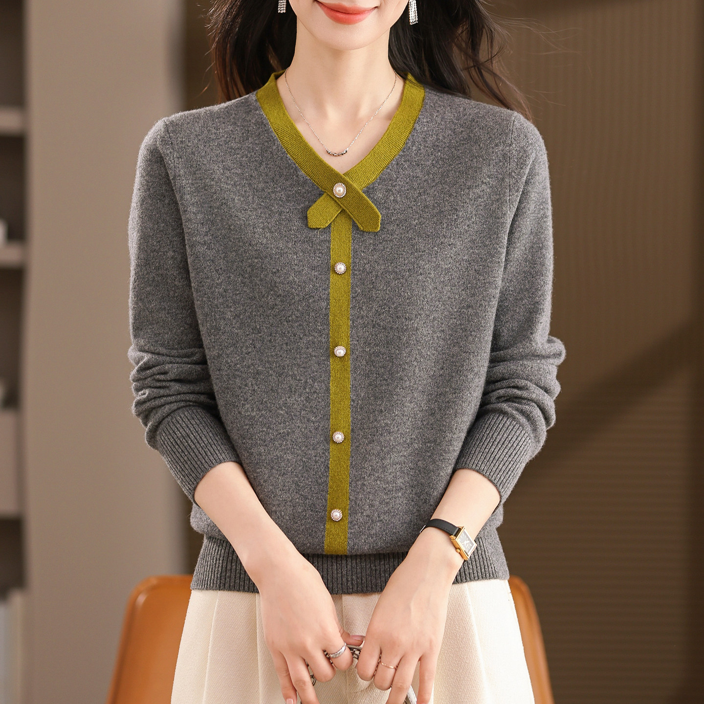 新款羊毛开衫外套女针织打底衫V领2025年春季羊绒外搭短款毛衣女