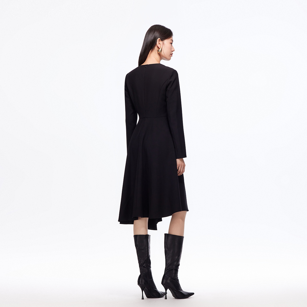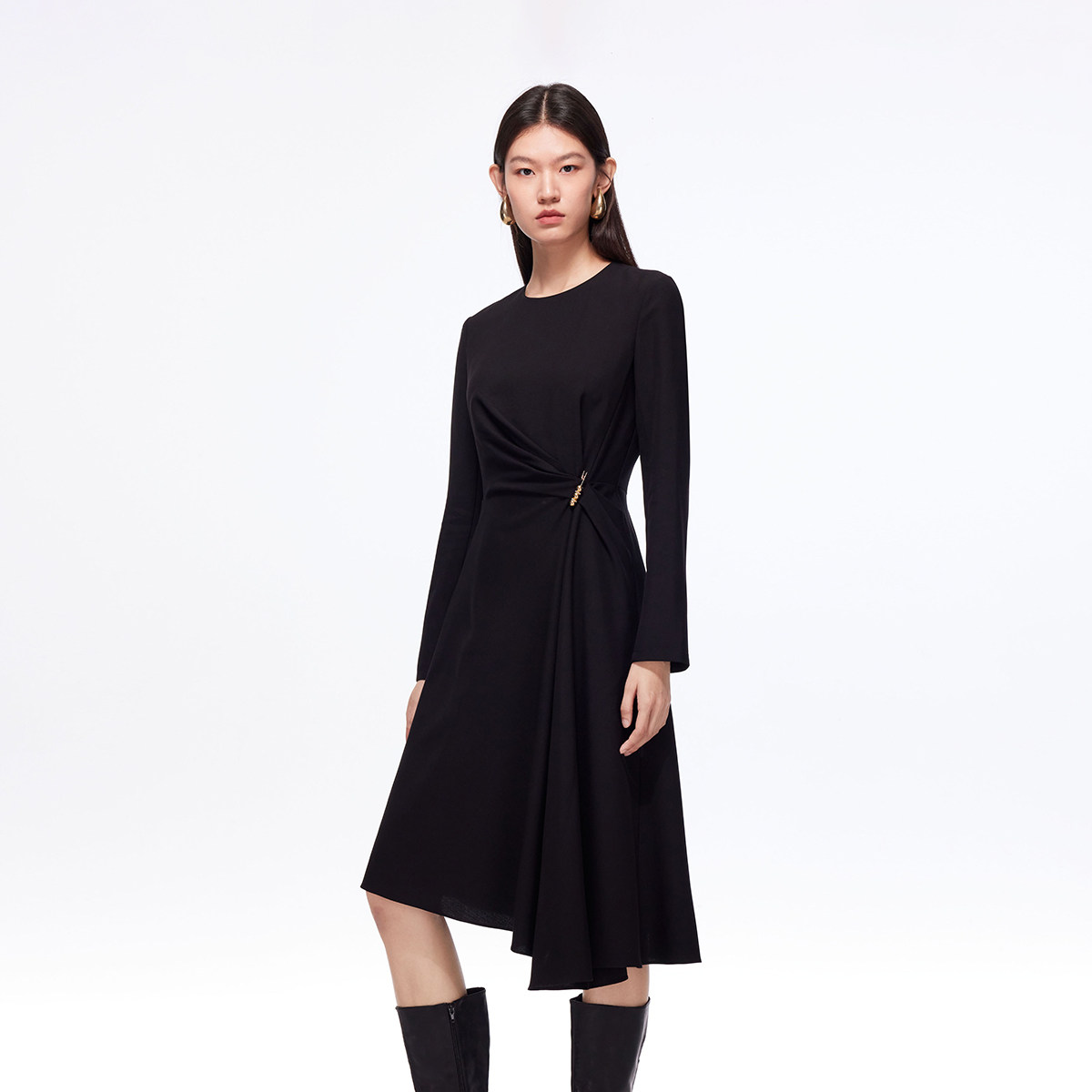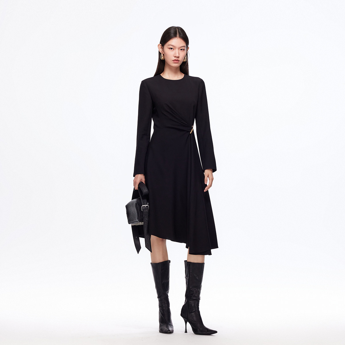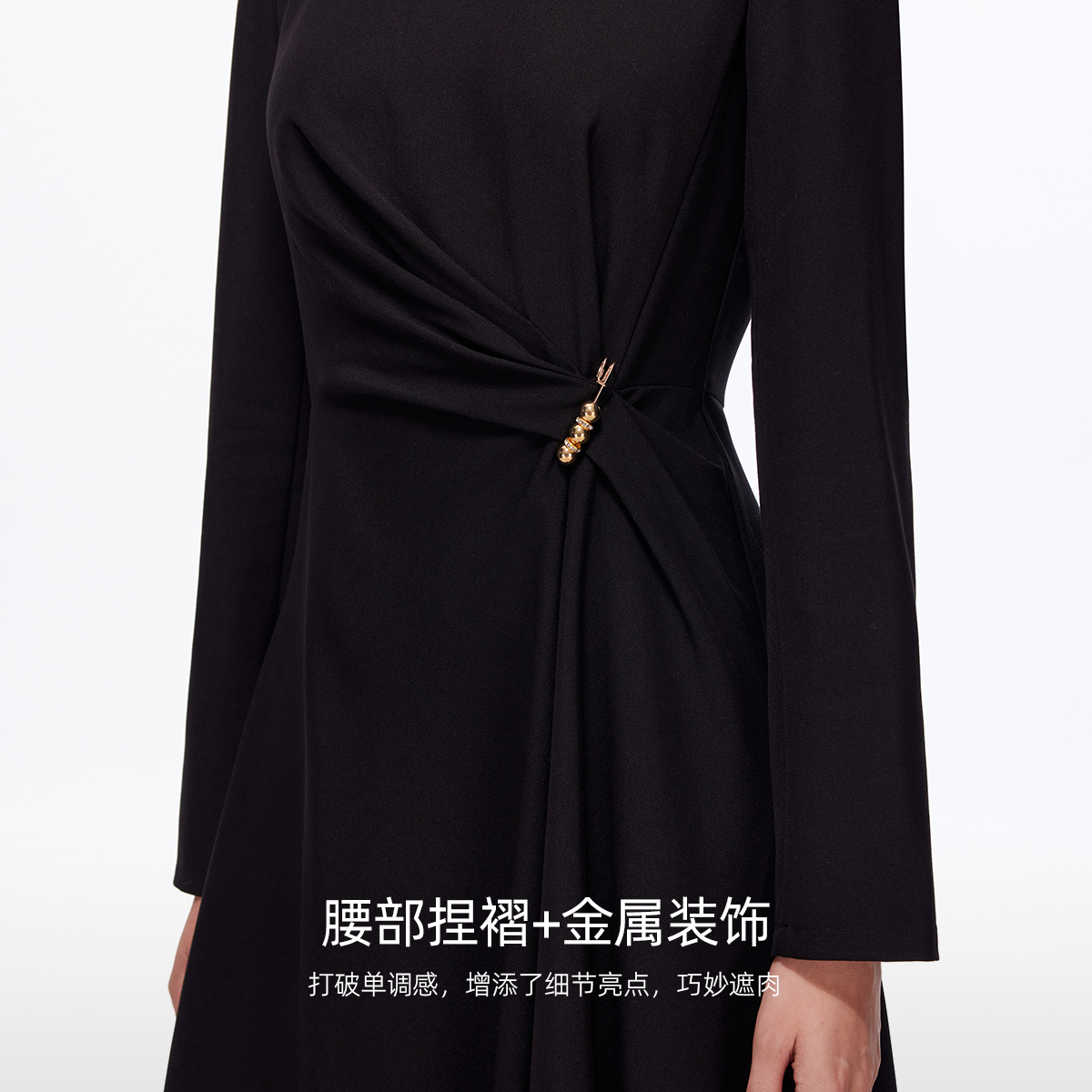 Vero Moda连衣裙2025秋冬新款金属装饰收腰显瘦不规则裙摆小黑裙