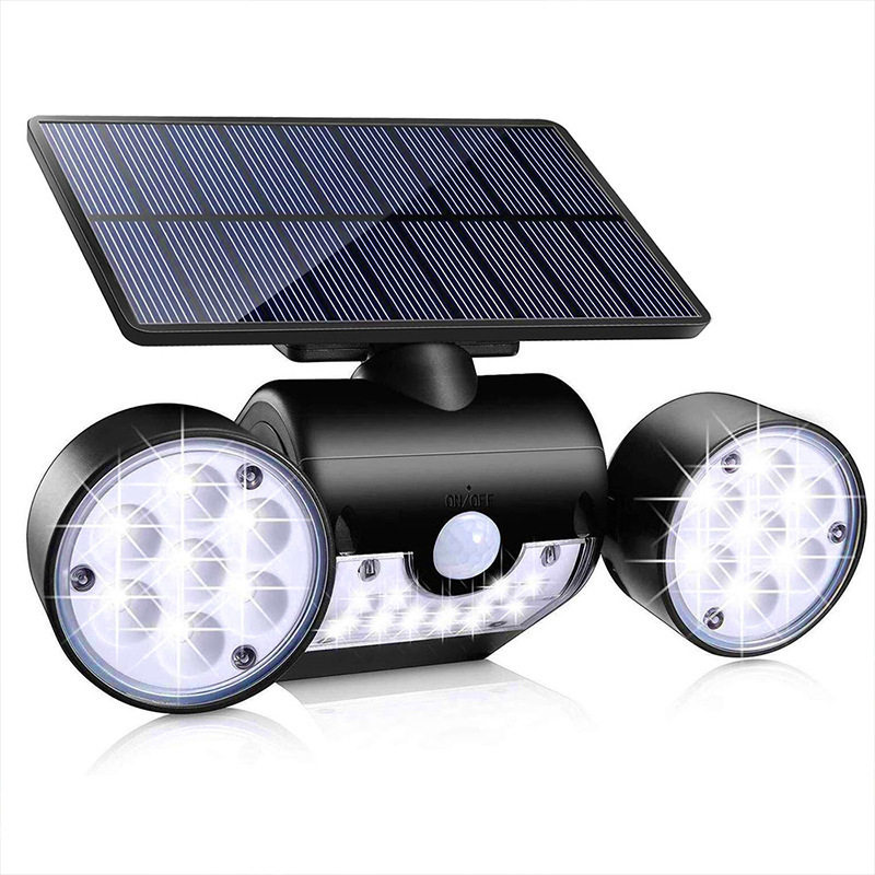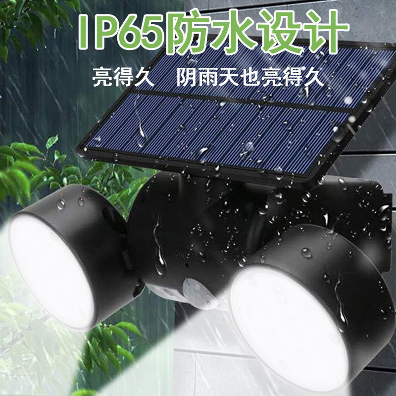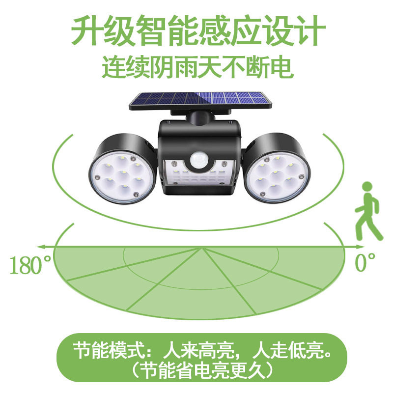 太阳能双头壁灯人体感应射灯LED圆形旋转户外防水庭院灯过道工厂