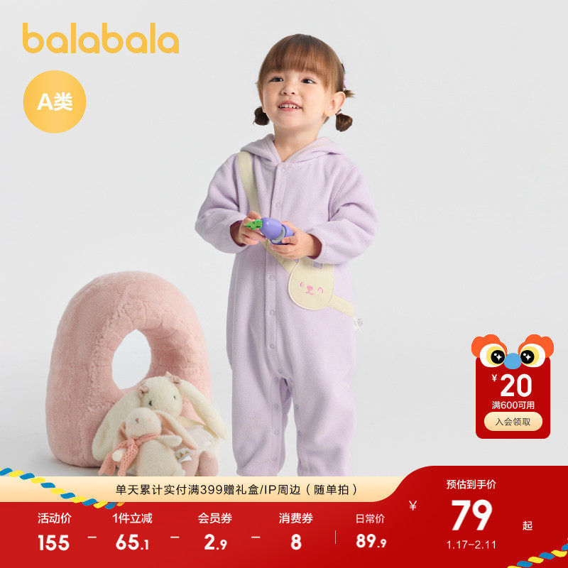 巴拉巴拉婴儿连体衣秋装宝宝外出包屁衣爬服2025新款时髦可爱加绒