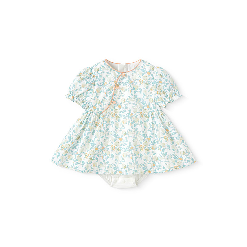 英氏婴儿包屁衣新中式衣服碎花夏季泡泡袖女童纯棉连体衣2025新款