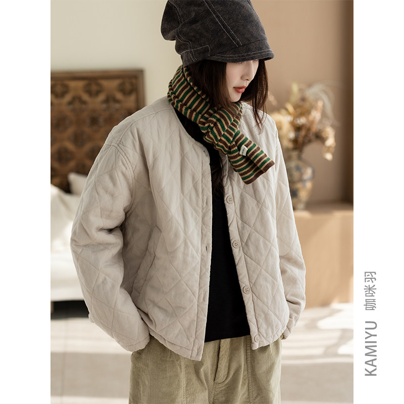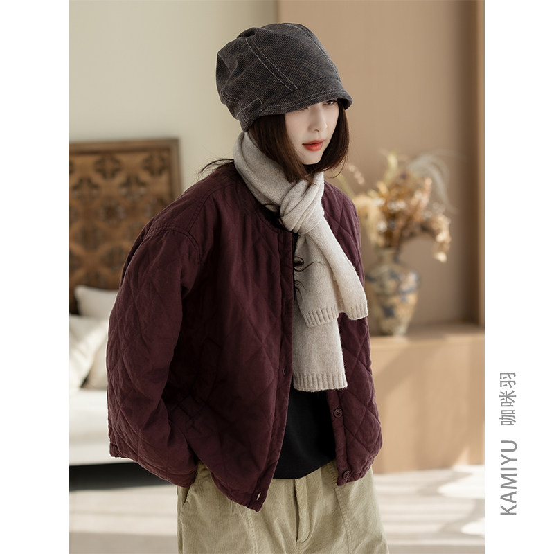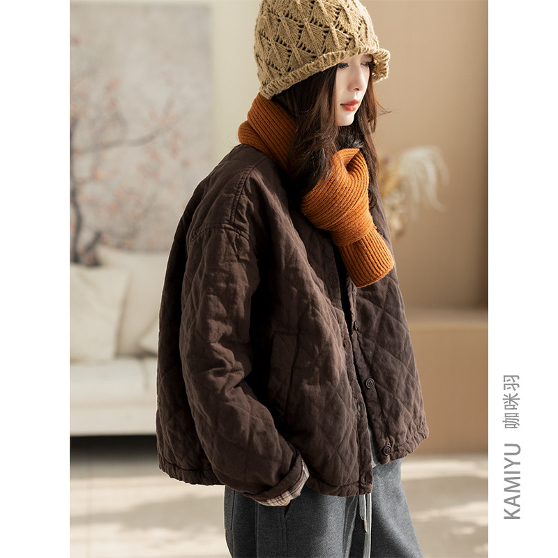 咖咪羽棉服女冬装新款棉衣文艺休闲独特女士好看复古女款麻外套厚