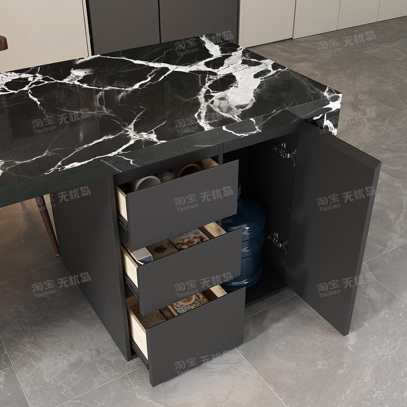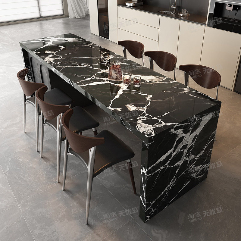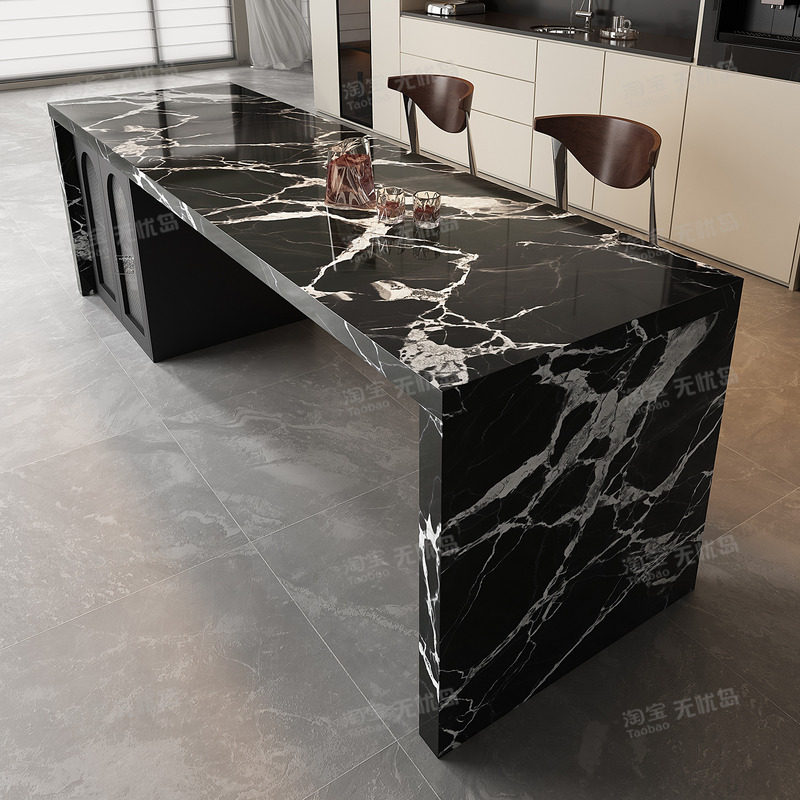 齐平岩板岛台餐桌一体高级客厅中导台可定制家用倒台西厨吧台